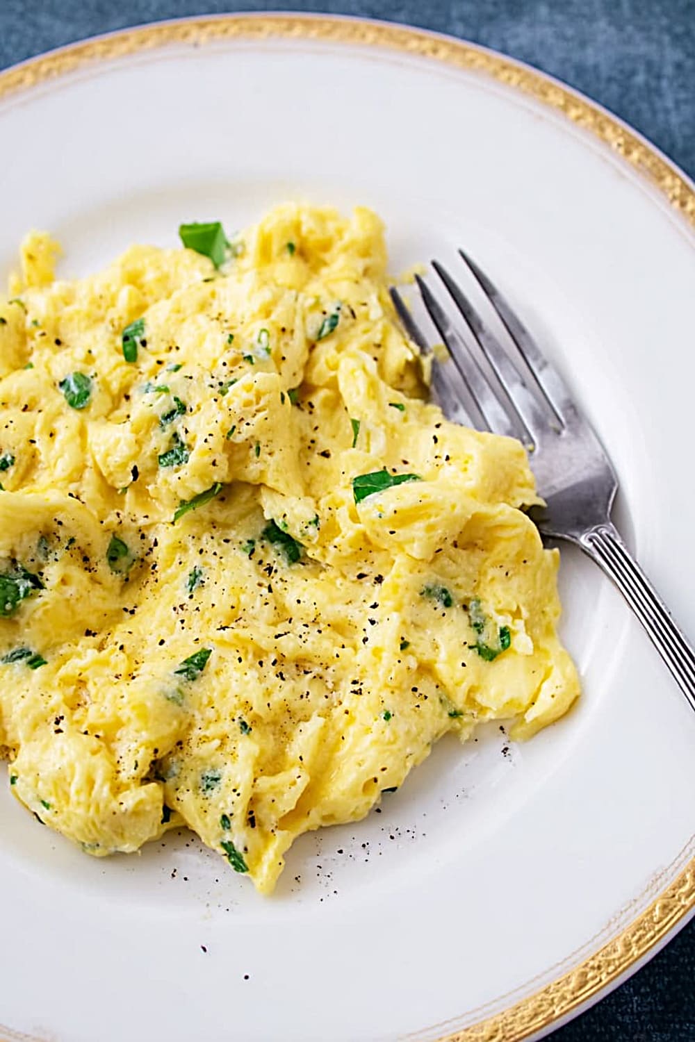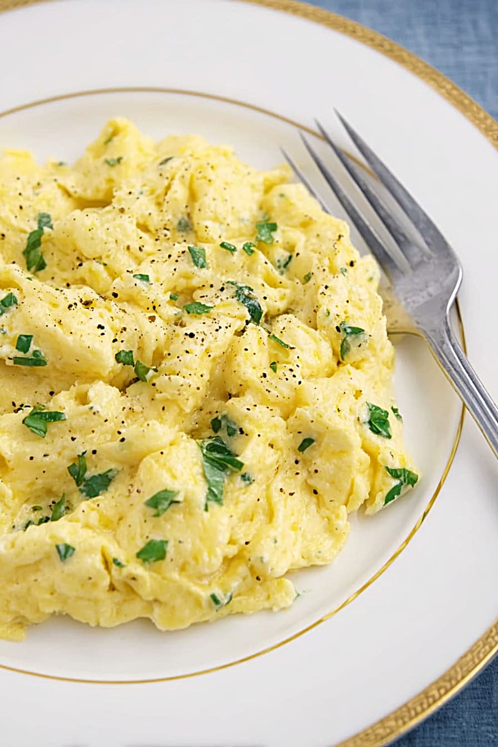 These aren’t just scrambled eggs – they’re velvety pillows of perfection that stay incredibly moist and tender, never rubbery or overcooked.