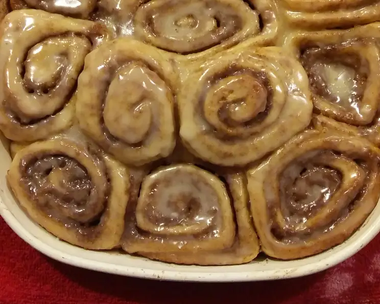 Keep an eye on the baking time. Don’t bake too long or the rolls will be dry. They are done when they turn golden brown. Let them cool a bit before you add the glaze. This stops the glaze from disappearing, and makes your rolls look professional.
