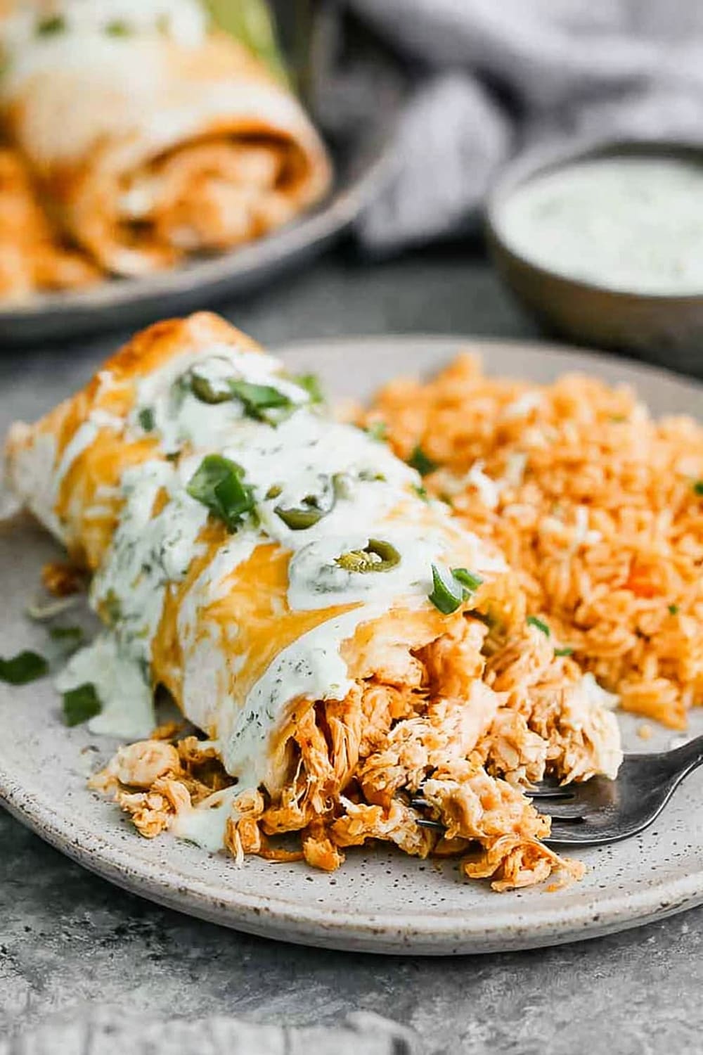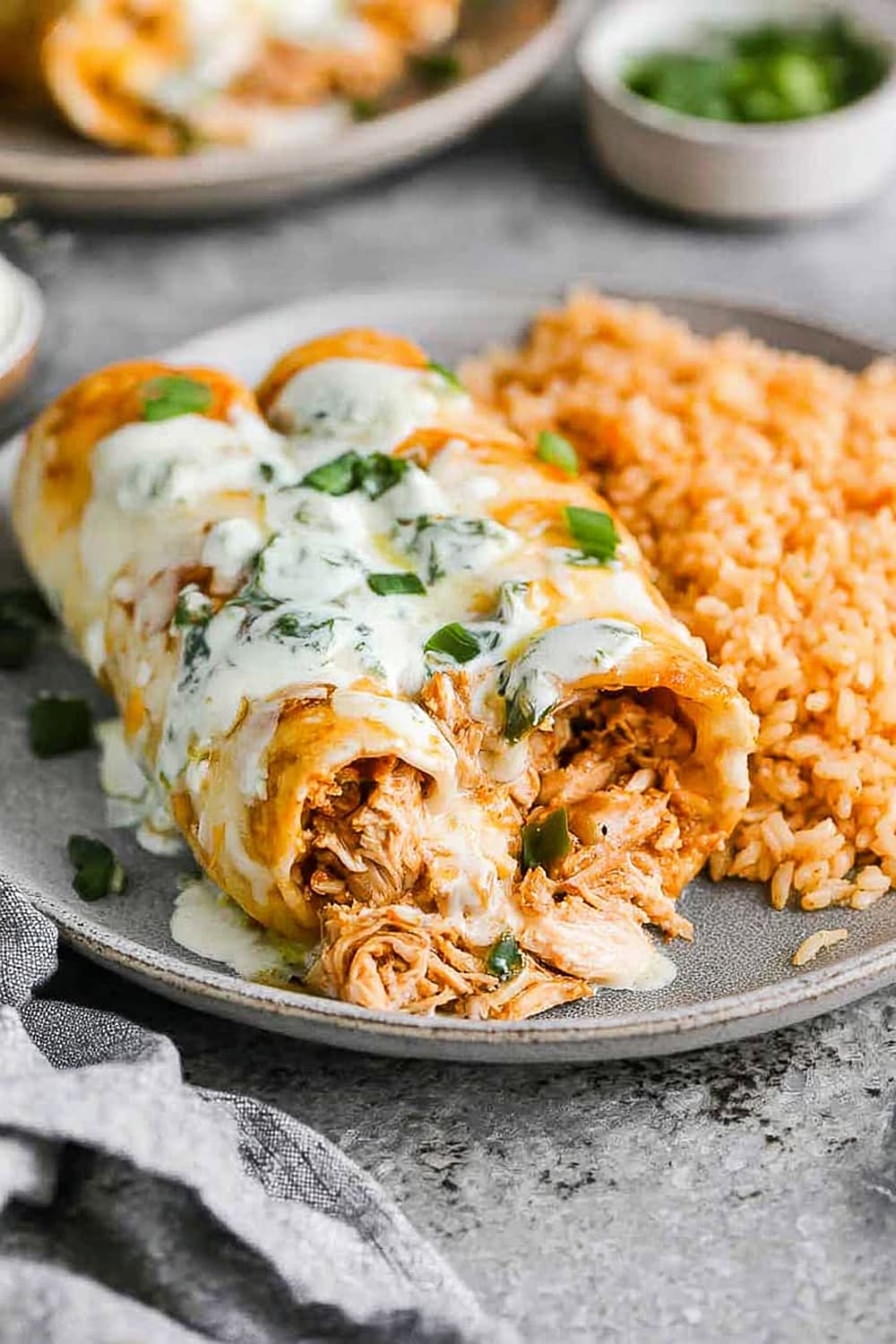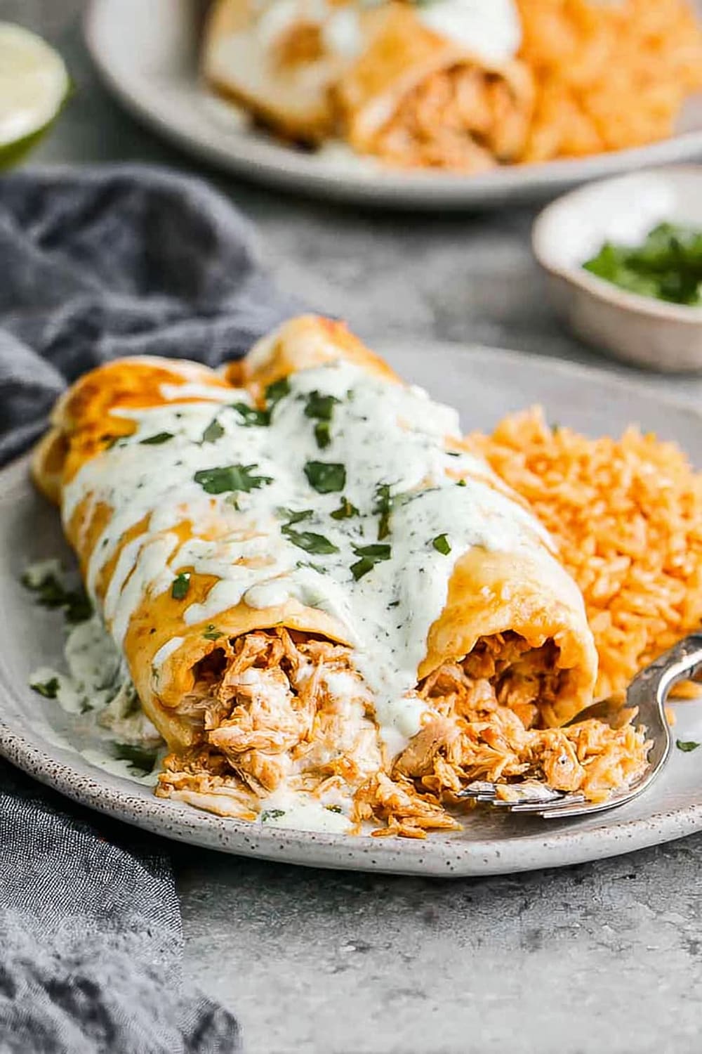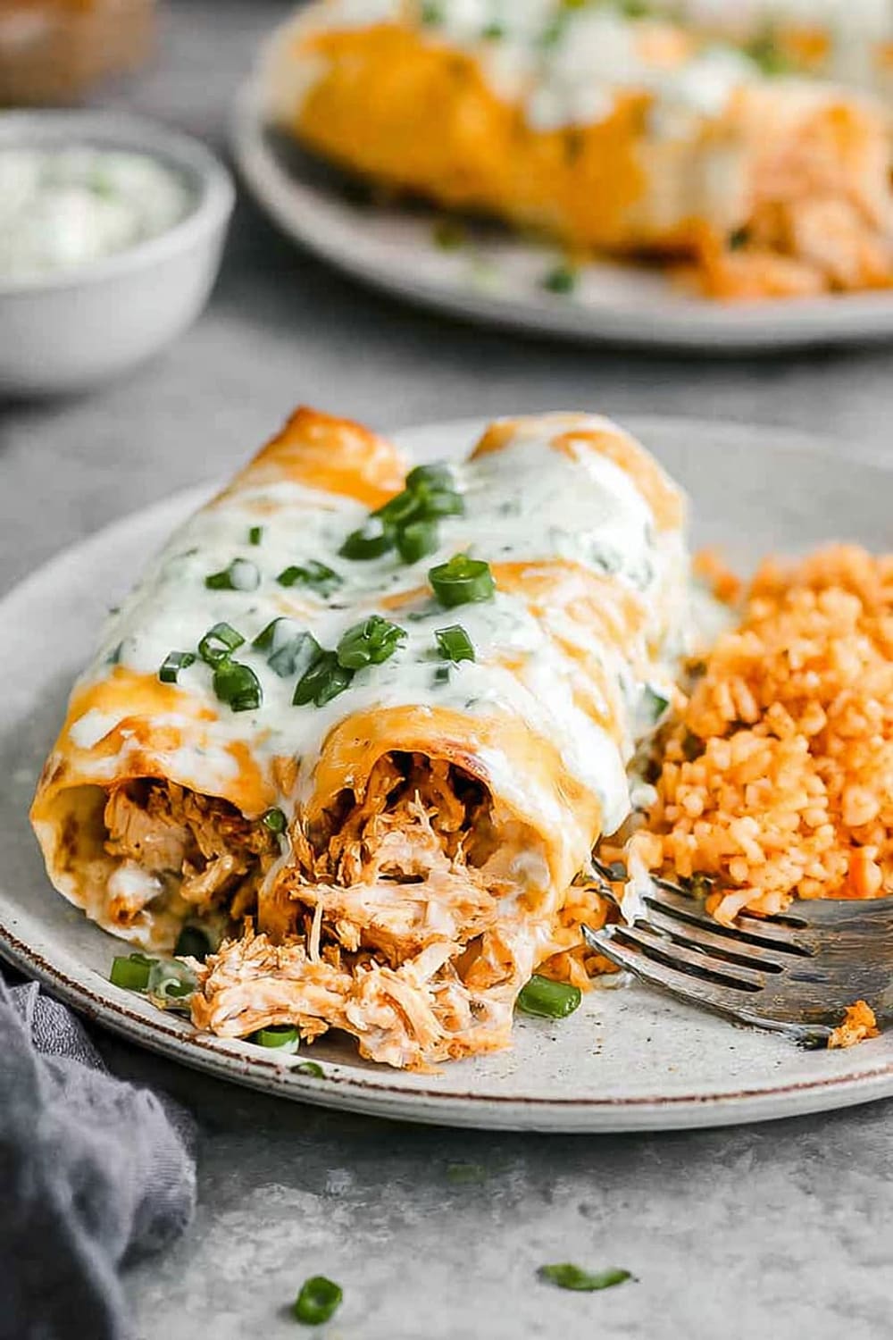 Picture crispy, golden tortillas stuffed with seasoned shredded chicken and melted cheese, then smothered in the most incredible creamy jalapeño sauce that’ll make you question every other sauce you’ve ever loved.