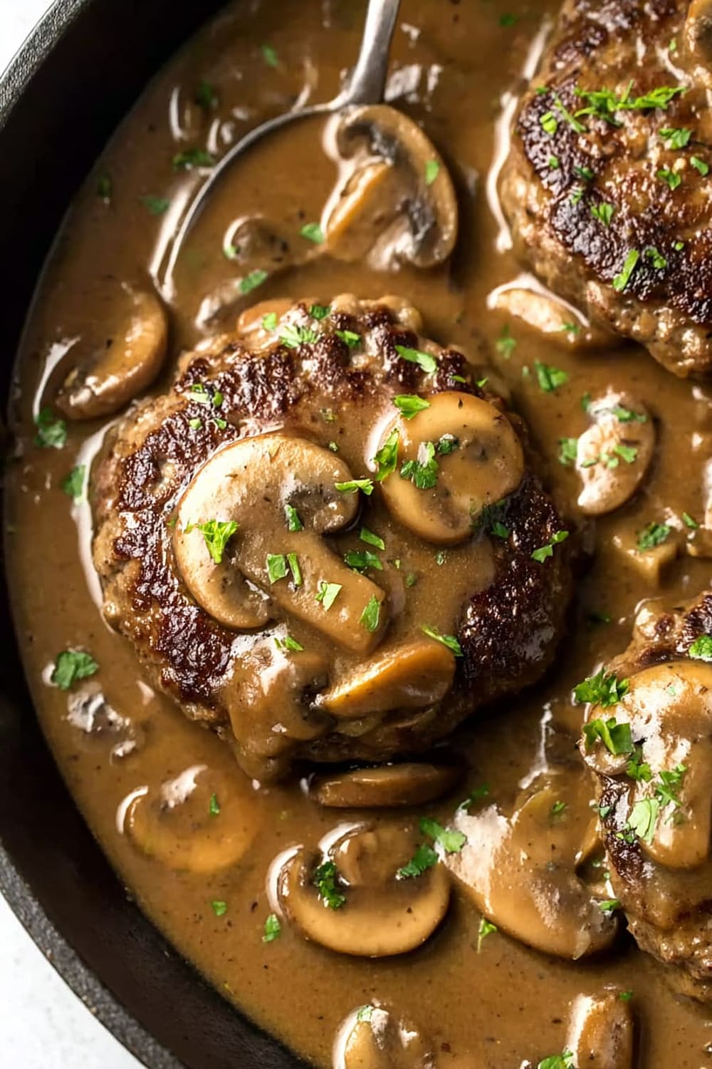 - 11 Serve the Salisbury steaks immediately, generously topped with the mushroom gravy. These are absolutely perfect over creamy mashed potatoes, buttered egg noodles, or rice. Sprinkle with fresh chopped parsley for a pop of color if desired.
