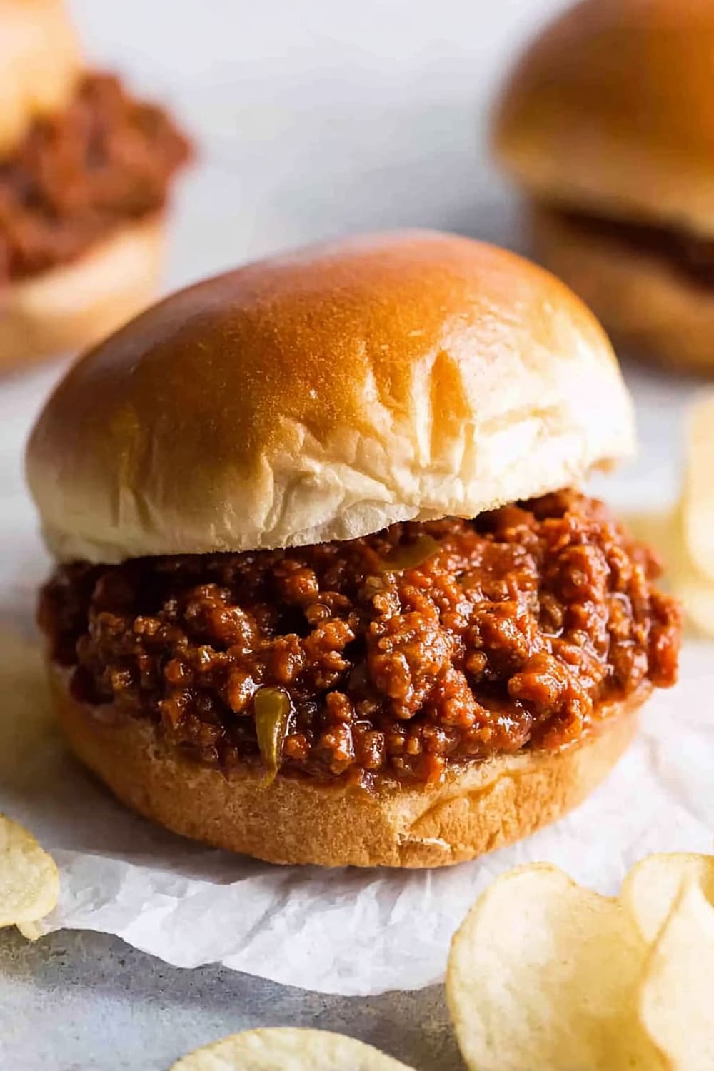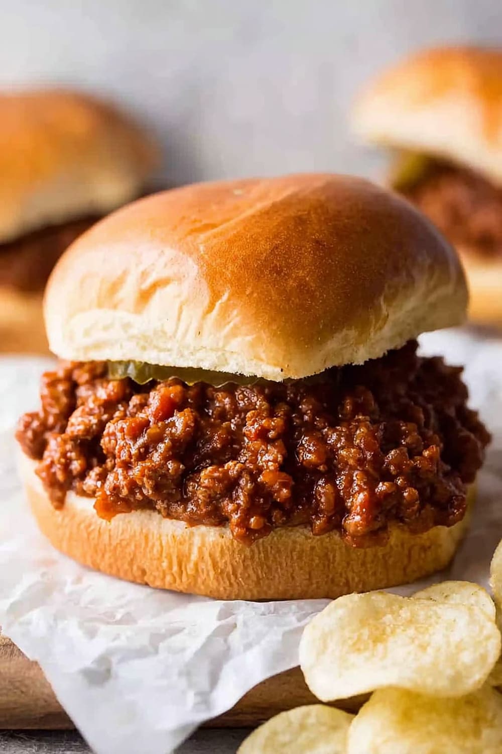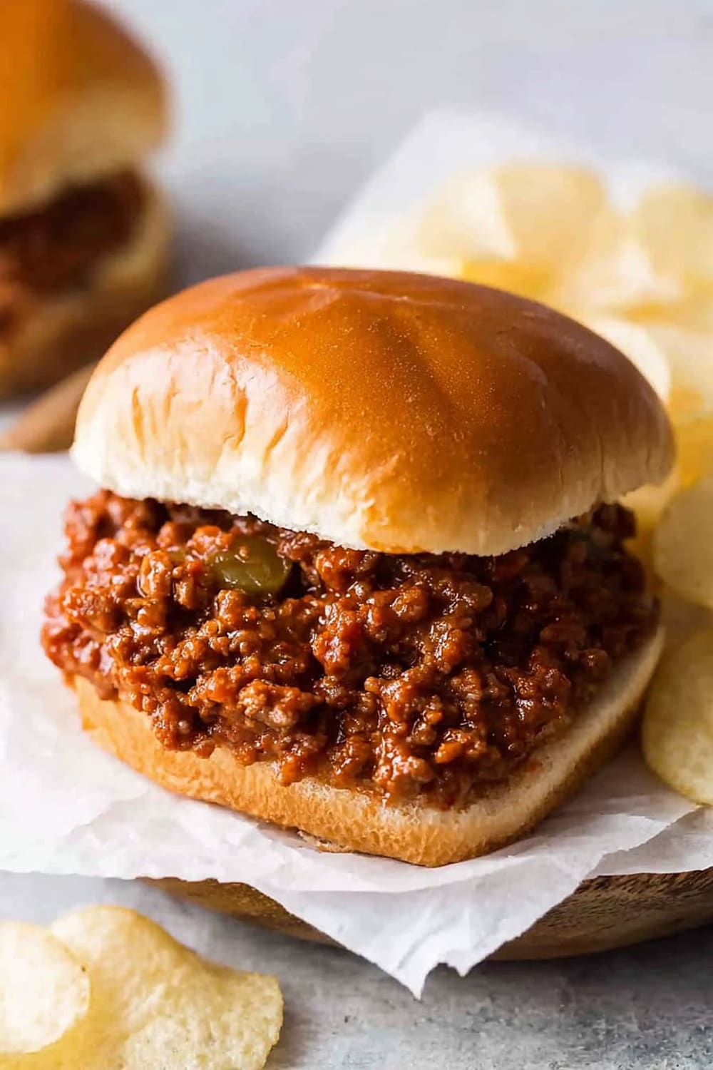 The rich, tangy-sweet sauce clings to every bite of perfectly seasoned ground beef, creating that magical mess that somehow tastes even better when it’s dripping down your chin.