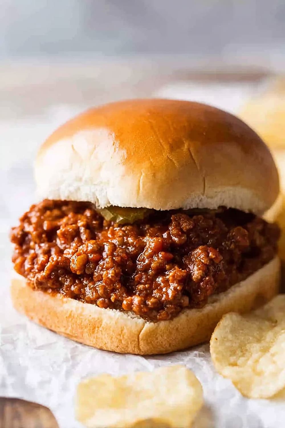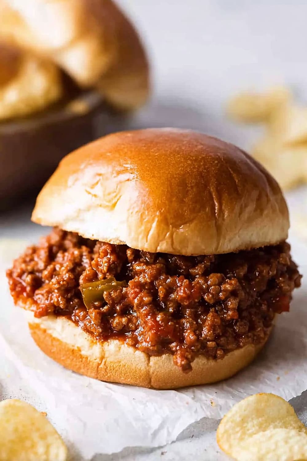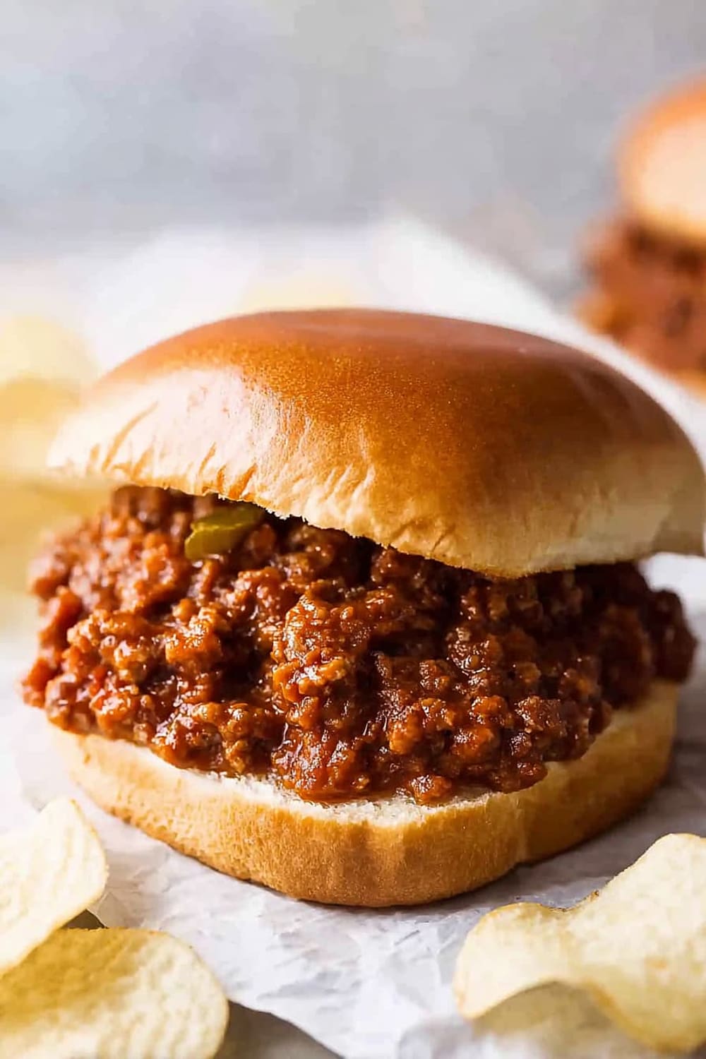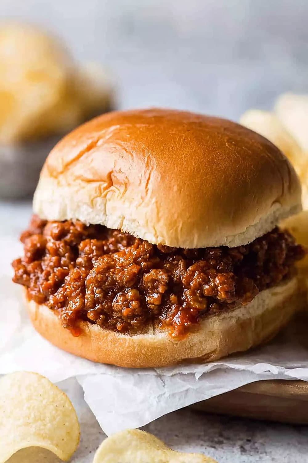 The rich, tangy-sweet sauce clings to every bite of perfectly seasoned ground beef, creating that magical mess that somehow tastes even better when it’s dripping down your chin.