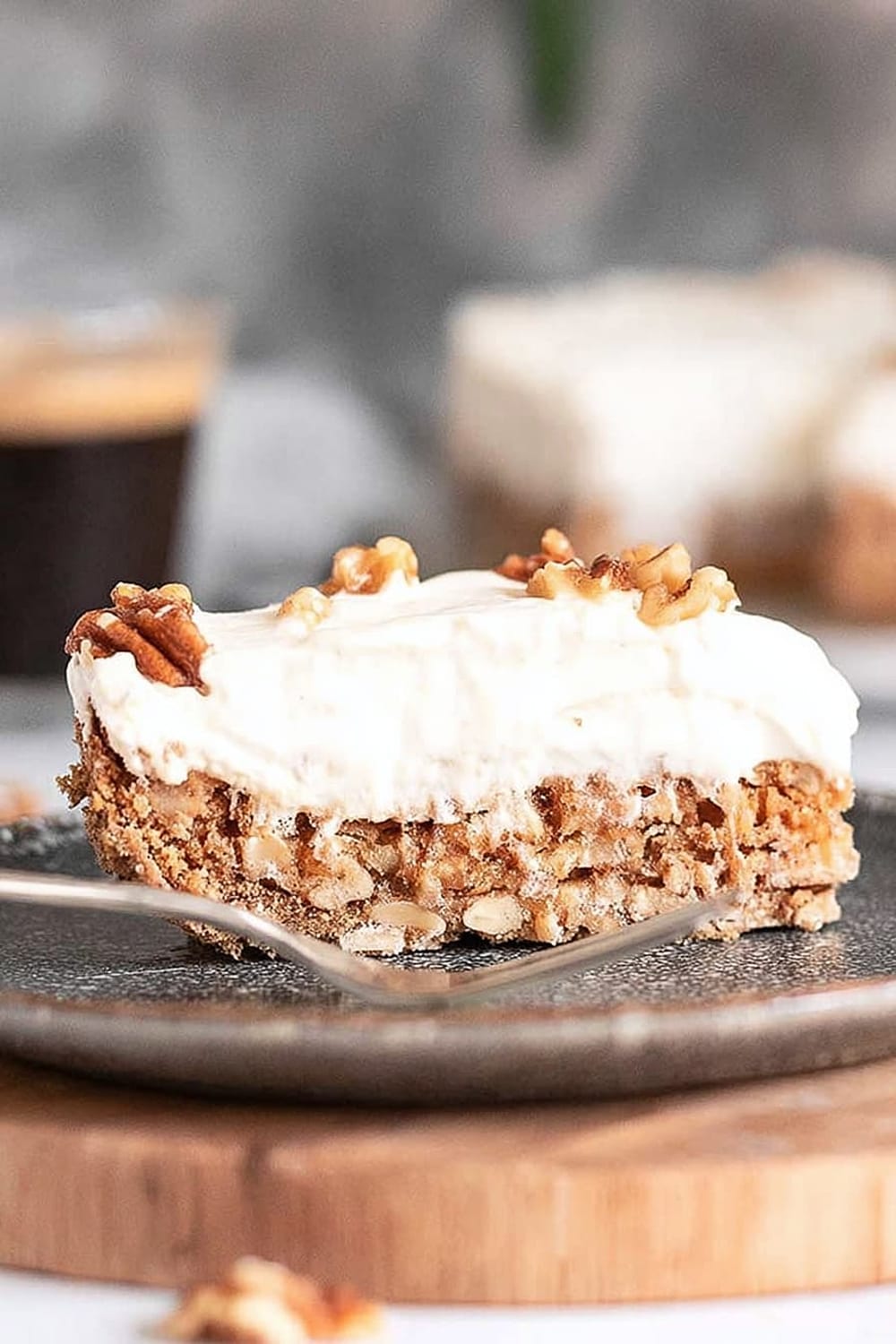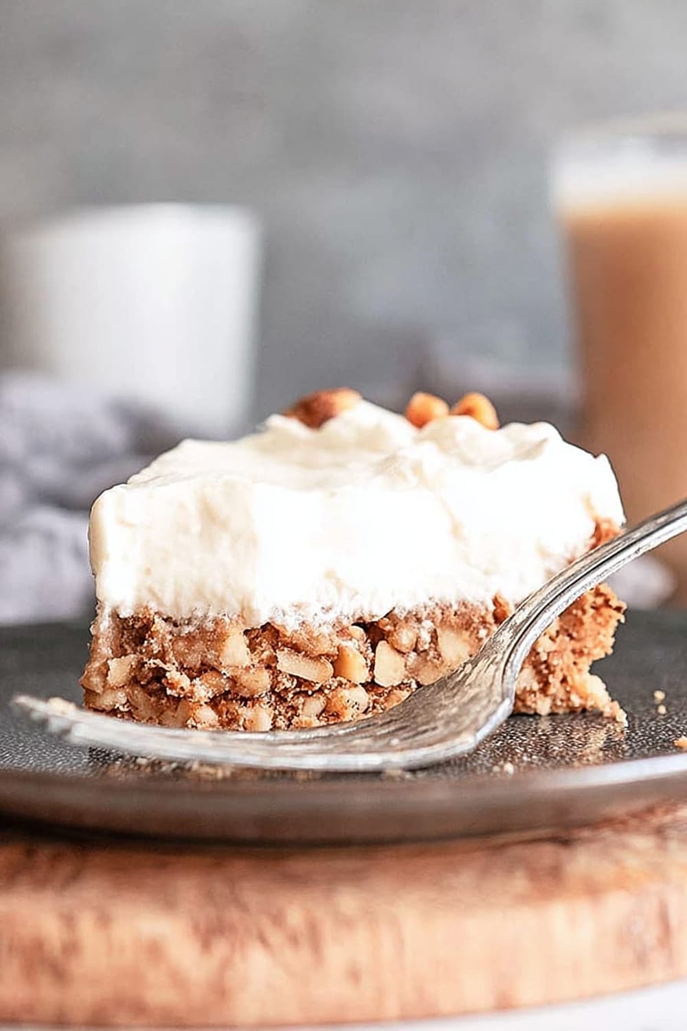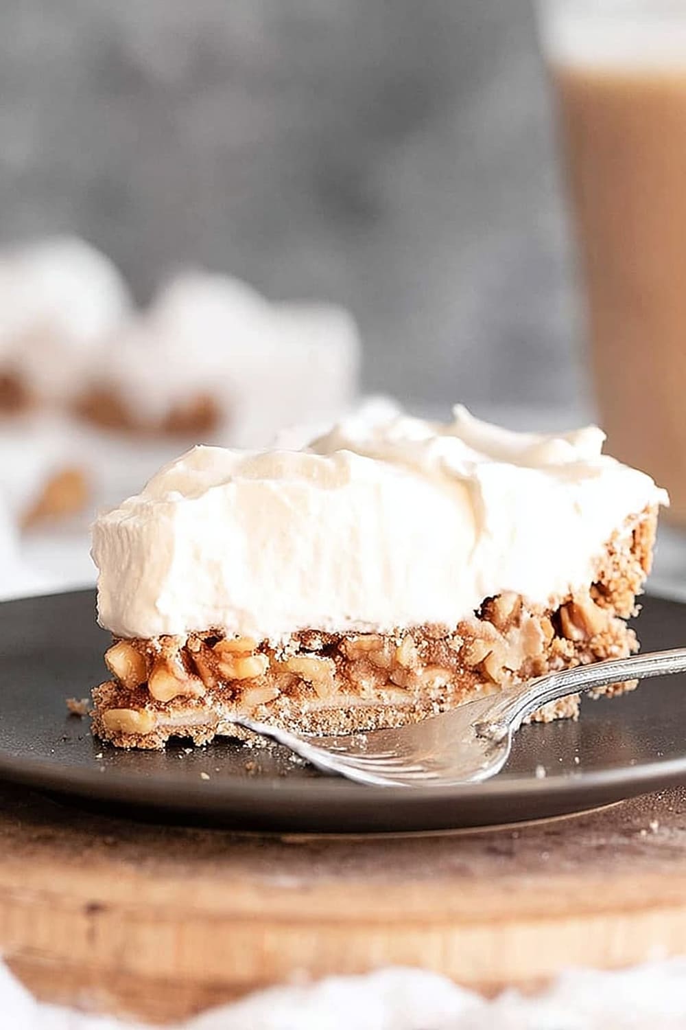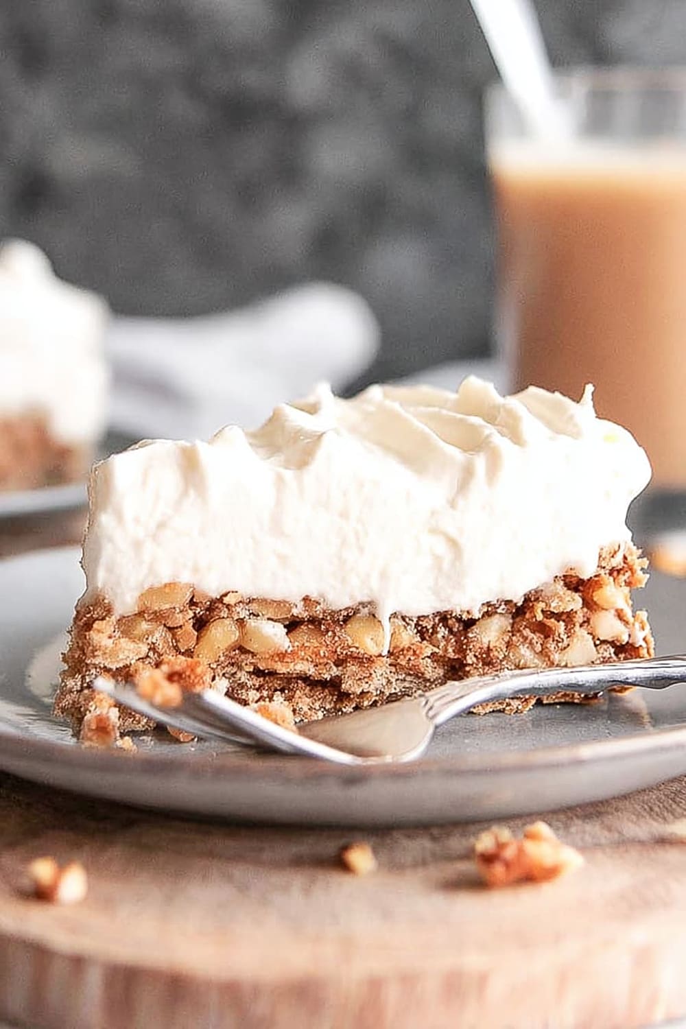 Coffee is absolutely divine with this dessert – the slight saltiness from the crackers plays beautifully against coffee’s bitterness. Dessert wines like Moscato or late-harvest Riesling complement the sweet, nutty flavors without overwhelming them. For non-alcoholic options, chai tea or vanilla-spiced black tea echo the warm flavors, while sparkling water with lemon cleanses the palate between bites.