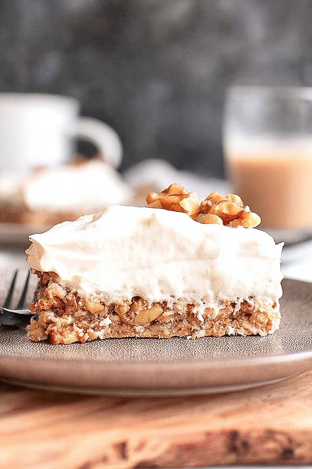 Double the recipe easily using a 9×13 inch pan – increase baking time by 10-15 minutes. For elegant presentation, pipe the whipped cream using a star tip and garnish with whole walnut halves and fresh berries. Individual portions can be made in ramekins – reduce baking time to 15-20 minutes.