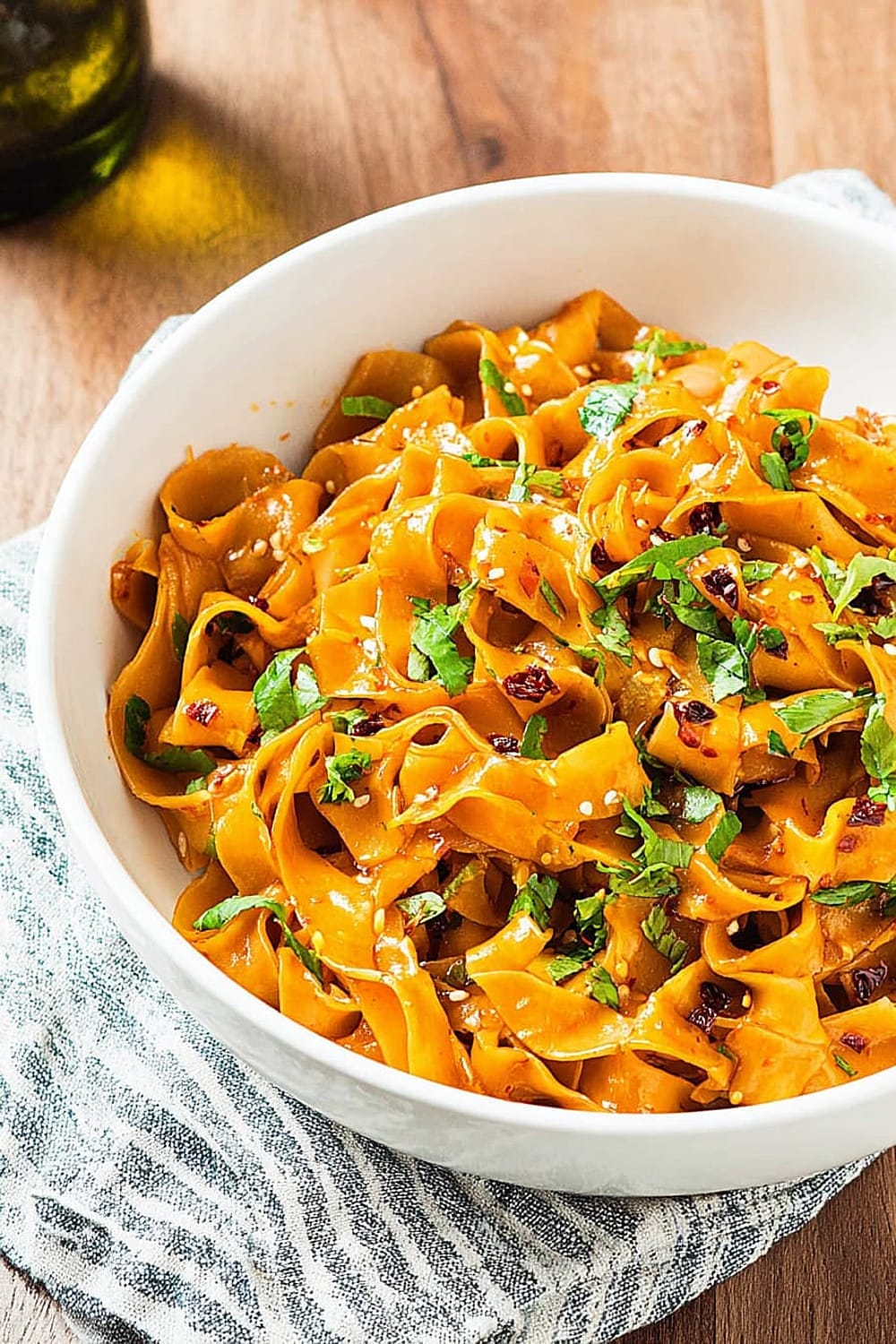 Leftover noodles keep in the refrigerator for up to 3 days in airtight containers. Reheat gently in the microwave with a splash of water, or better yet, enjoy them cold as a noodle salad. The chili oil can be made up to a week ahead and actually improves with time.