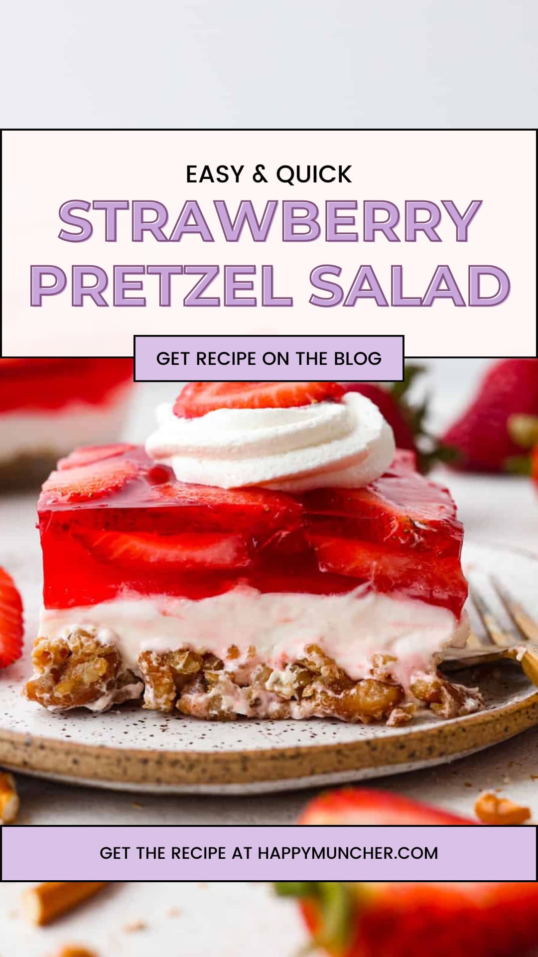 The preparation involves three simple layers: starting with a buttery pretzel crust, then moving on to a smooth, whipped cream cheese center, and finally topped with a layer of juicy strawberries encased in flavorful gelatin.