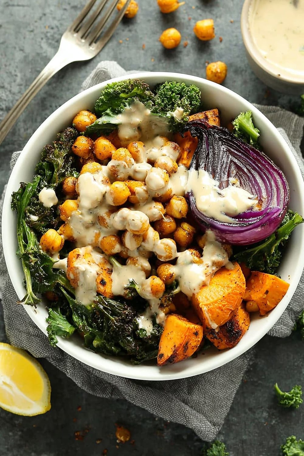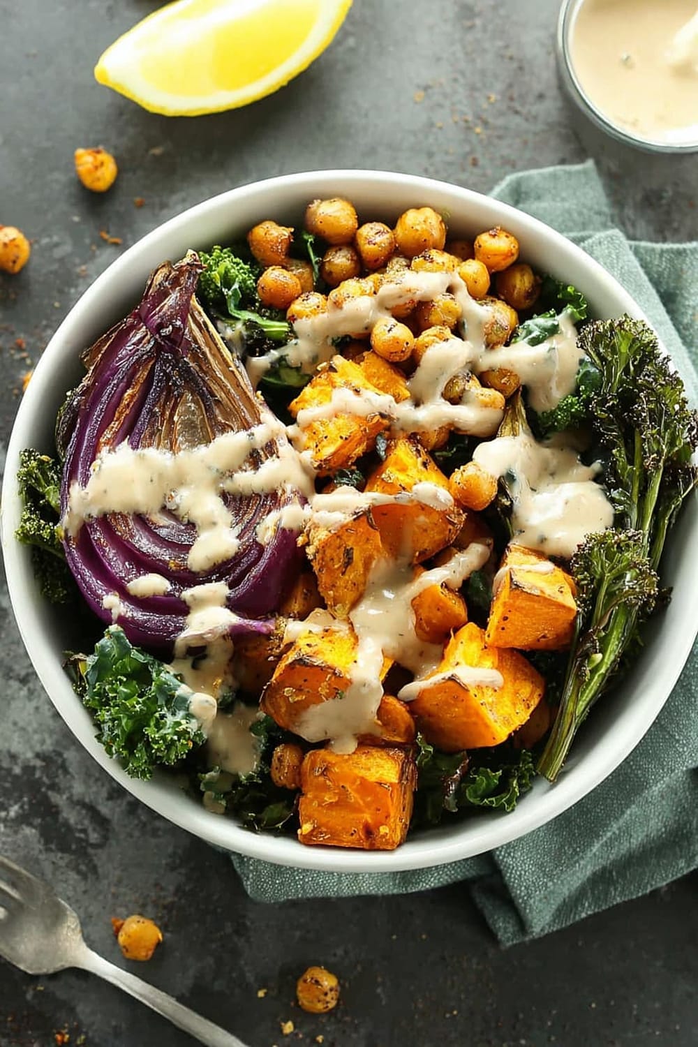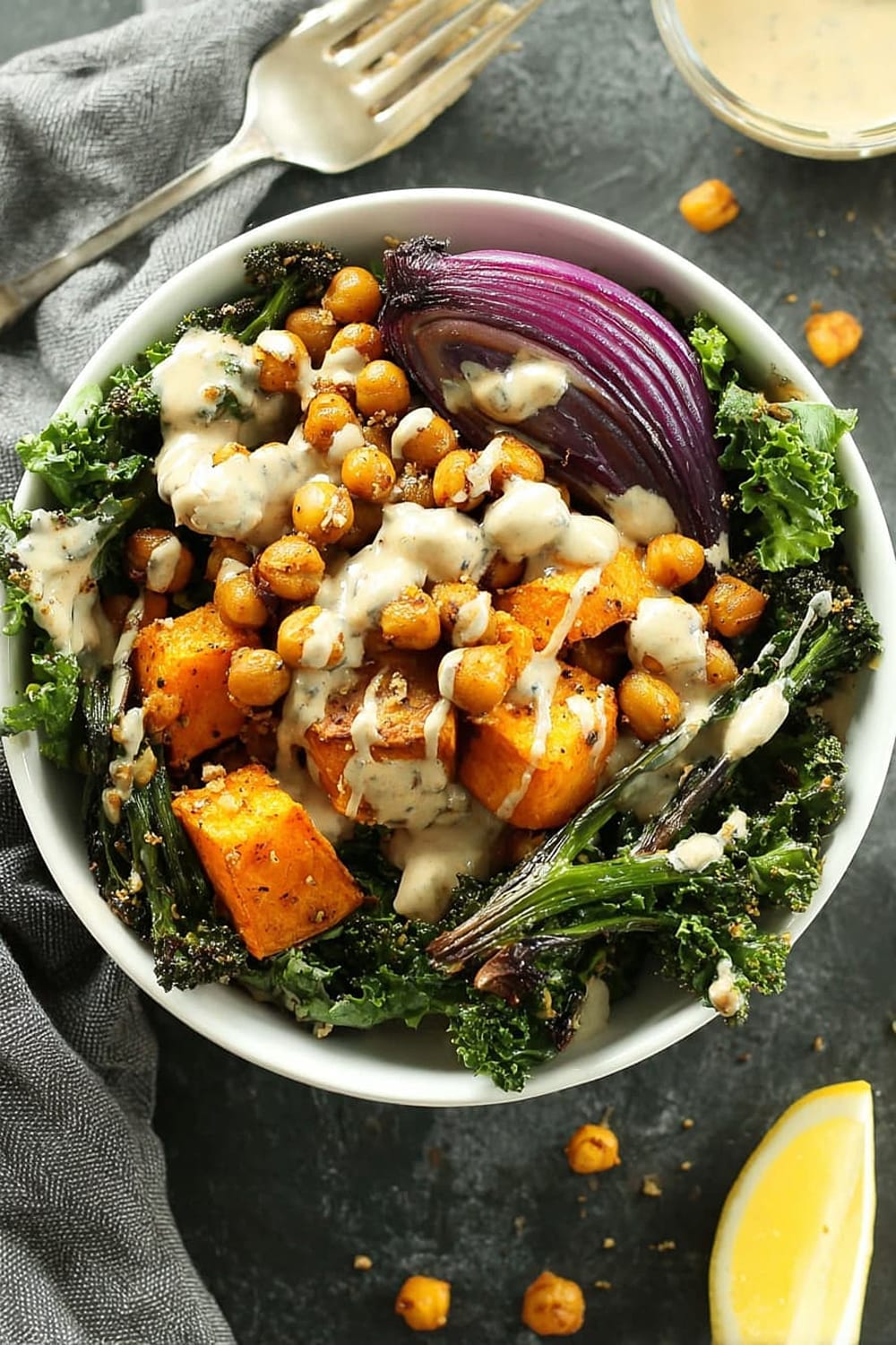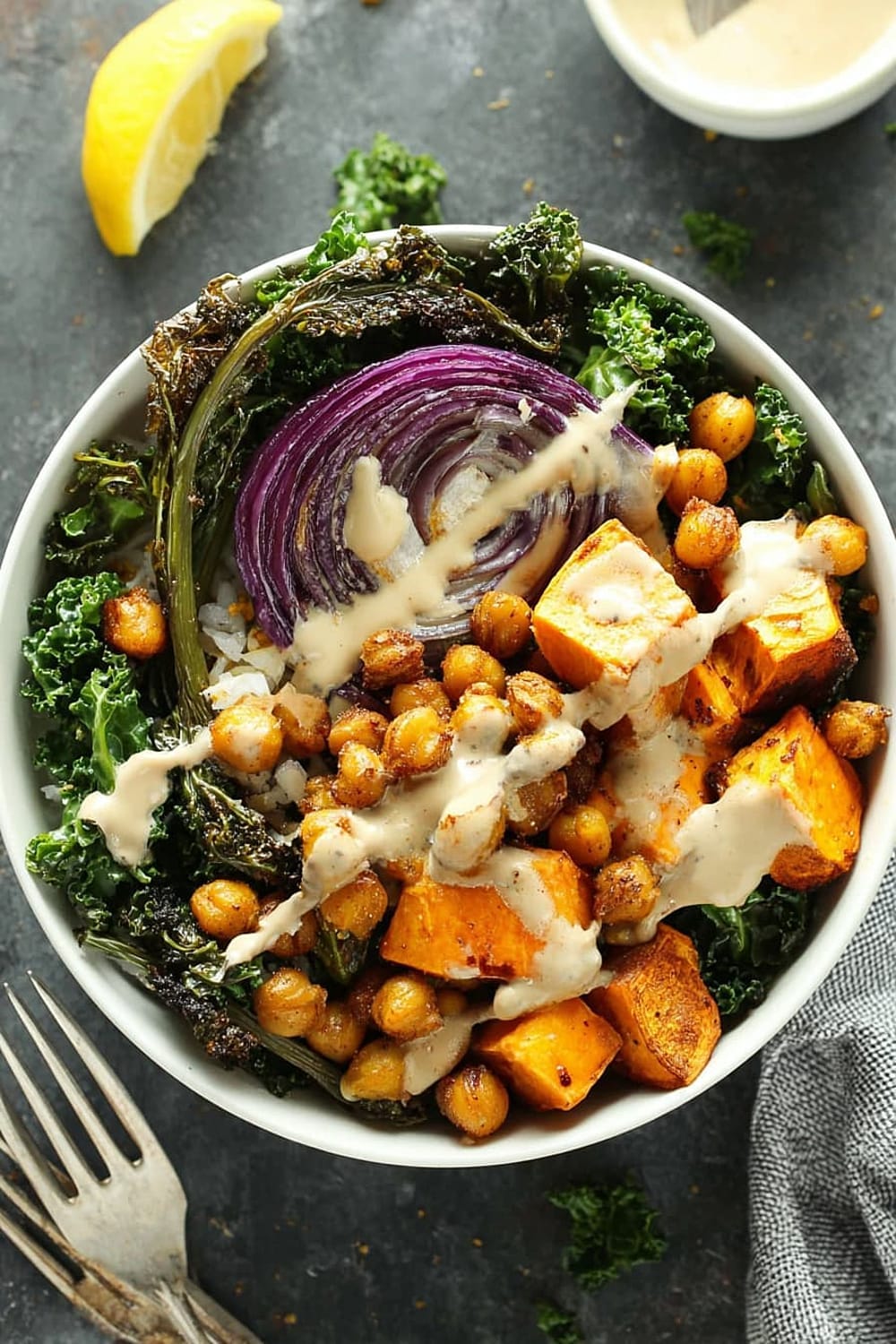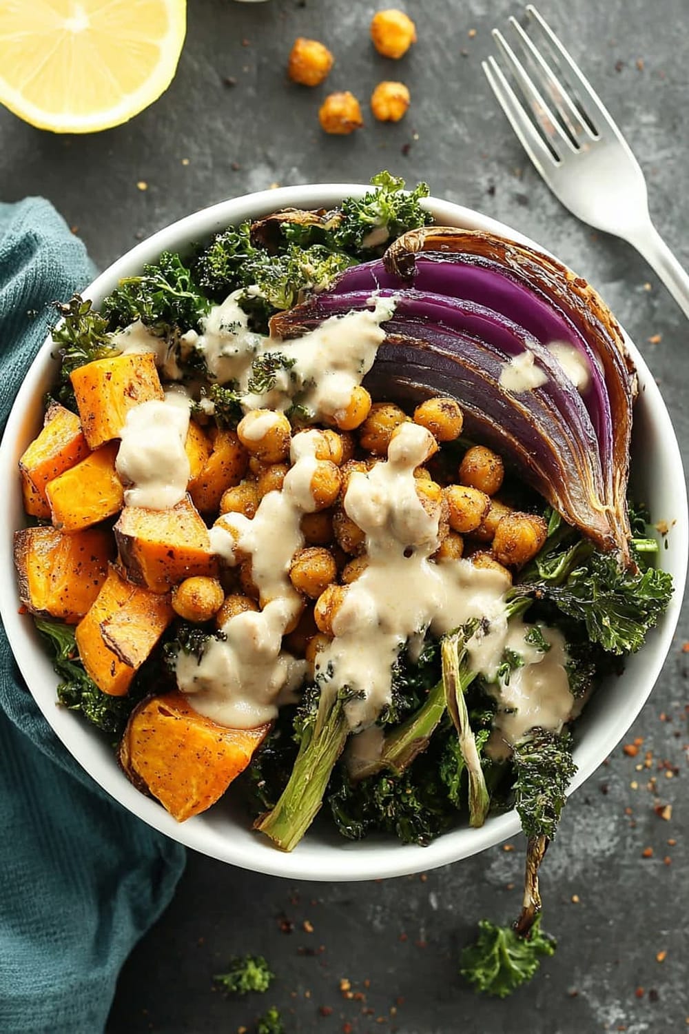 The combination of caramelized sweet potatoes, perfectly spiced chickpeas, and vibrant greens creates a symphony of textures that’ll make your taste buds do a happy dance.