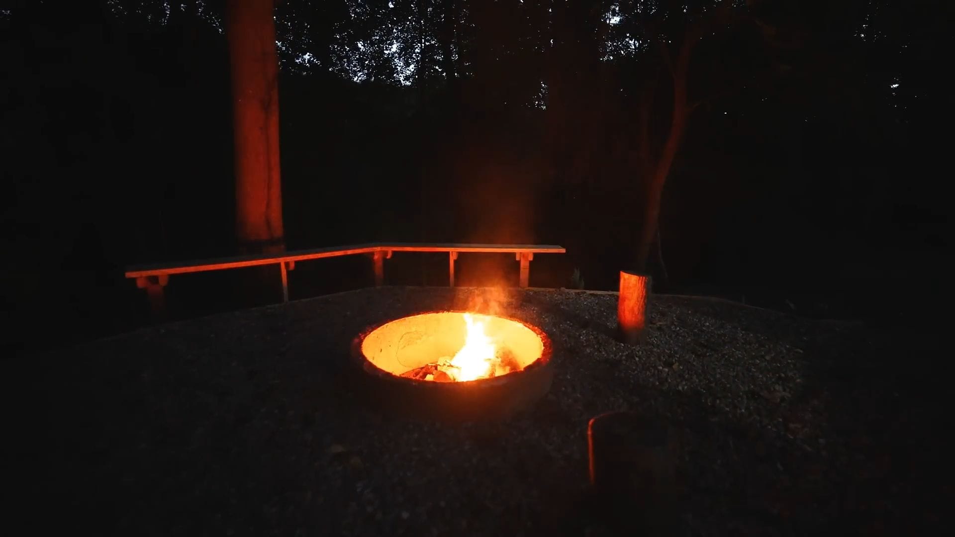 Behind the home, a fire pit area comes complete with provided firewood and sits near a natural creek that runs through the back of the property.