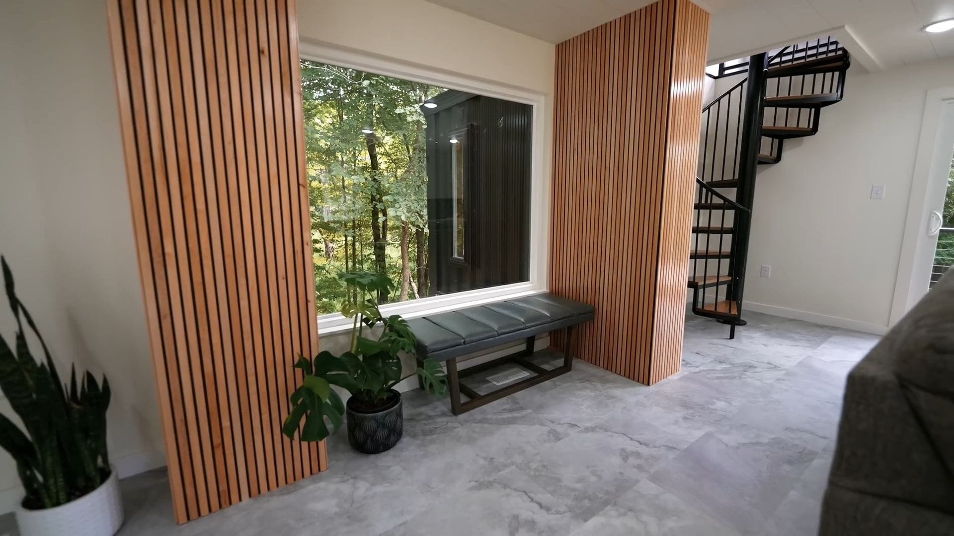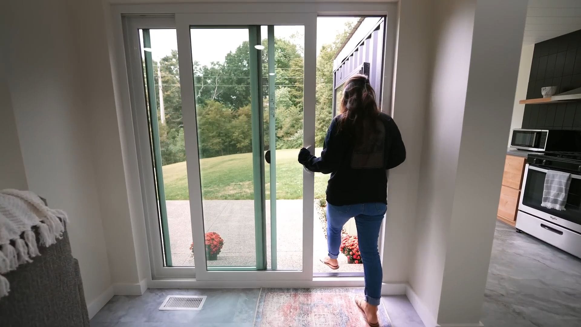As we approach the front entrance along the winding path, you can already sense the thoughtful design that awaits inside. The moment we step through the front door, we’re greeted by a practical mudroom that sets the tone for this incredibly functional space.