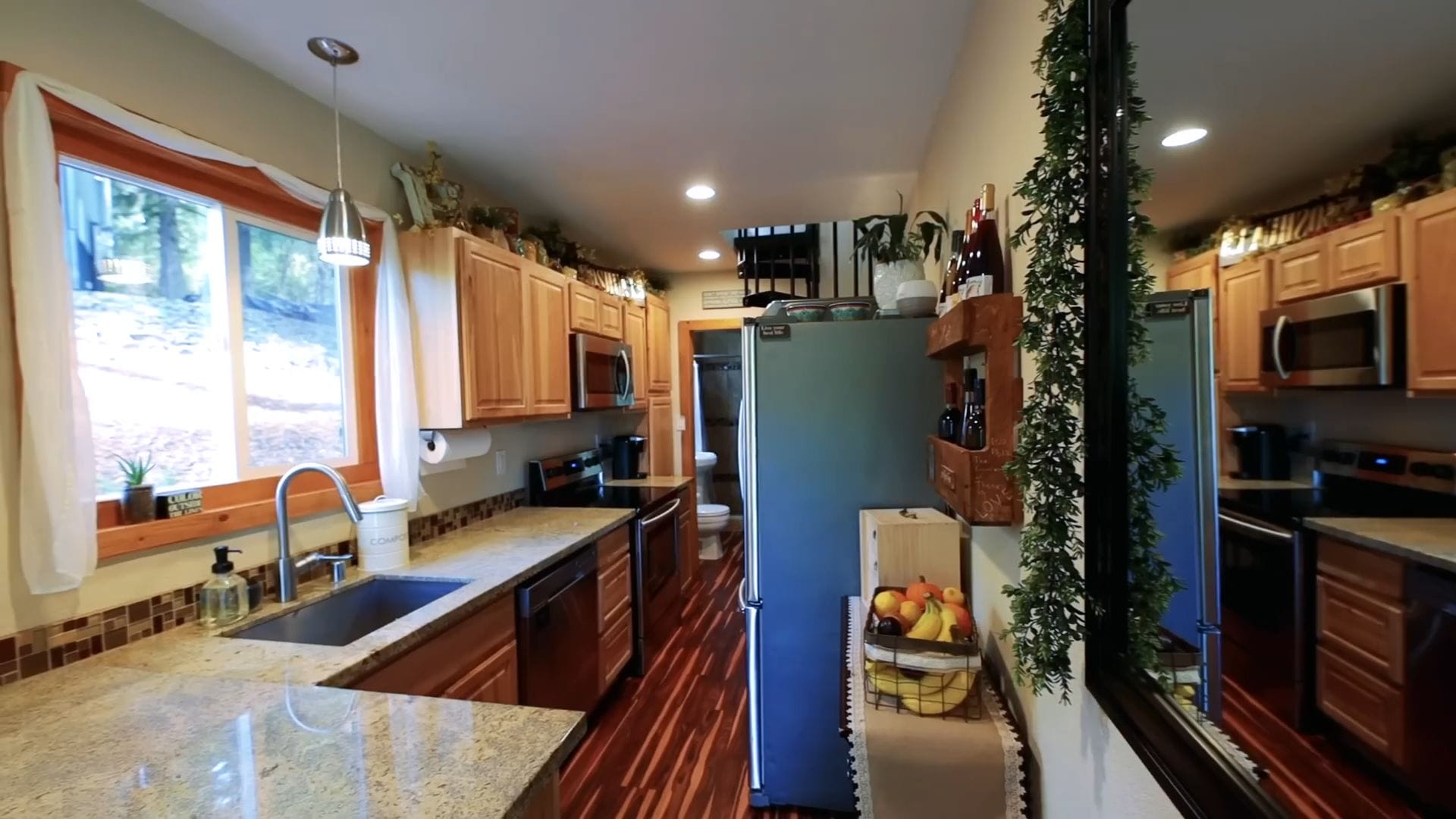 Moving into the kitchen, you’ll discover this is where they really refused to compromise on functionality or style. This galley-style space features full-size appliances throughout, proving you don’t have to sacrifice convenience when living small.