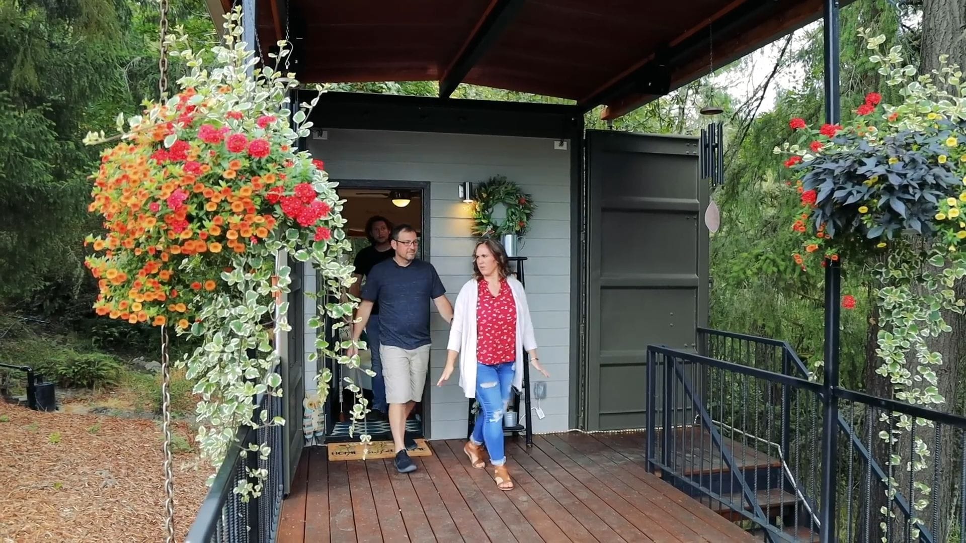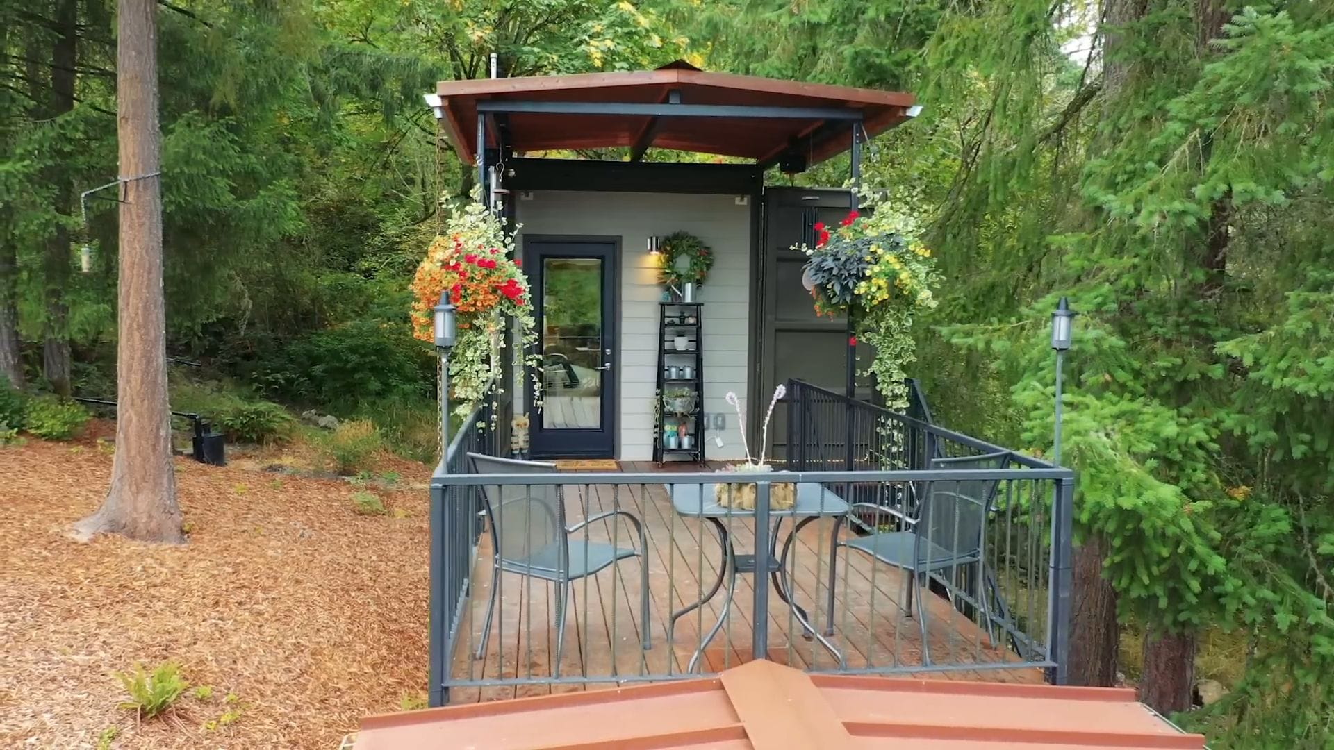 The real magic happens when you see how they’ve maximized their outdoor living space with an incredible deck built on top of the lower container. This elevated outdoor room extends their living area significantly, proving that when you’re living tiny, outdoor space becomes absolutely essential.