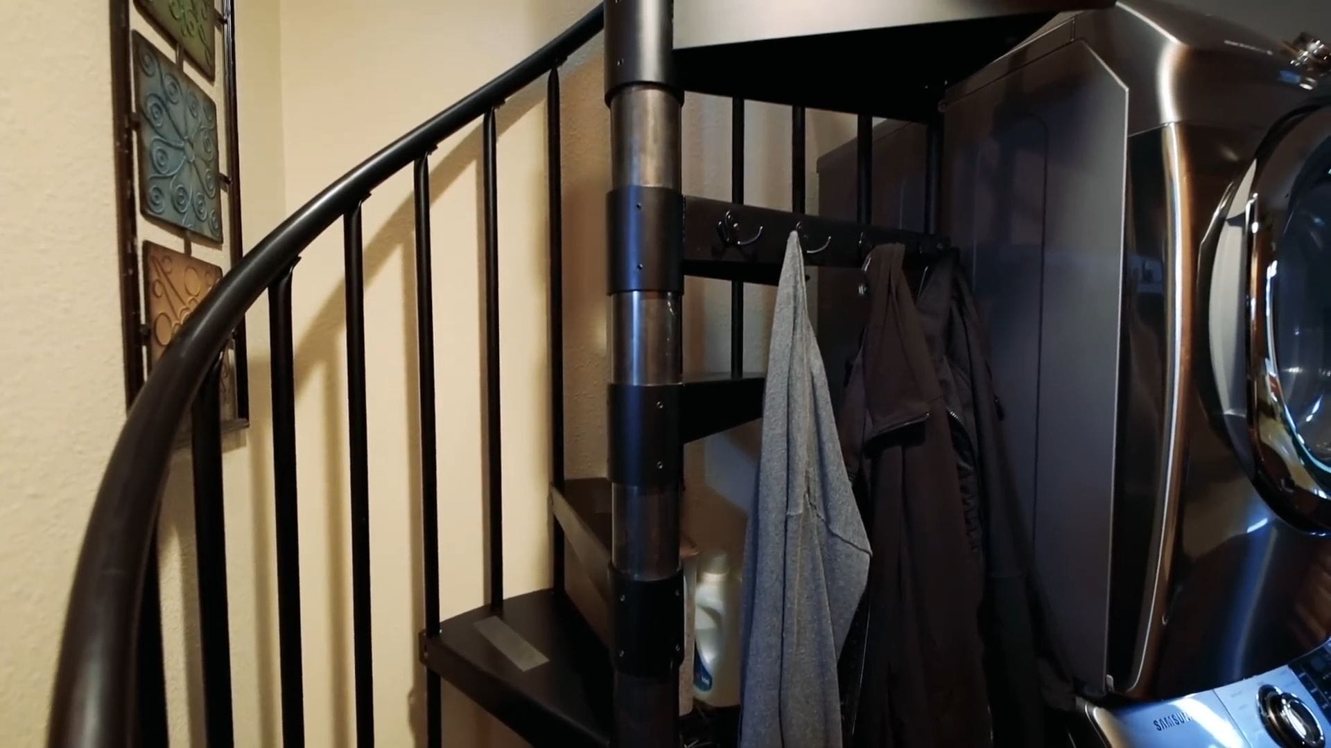Behind what appears to be a closet door lies a surprisingly versatile space that has served multiple purposes over the years. This area functioned as their son’s bedroom when he first moved in with them, complete with space for a twin bed, dresser, and TV.