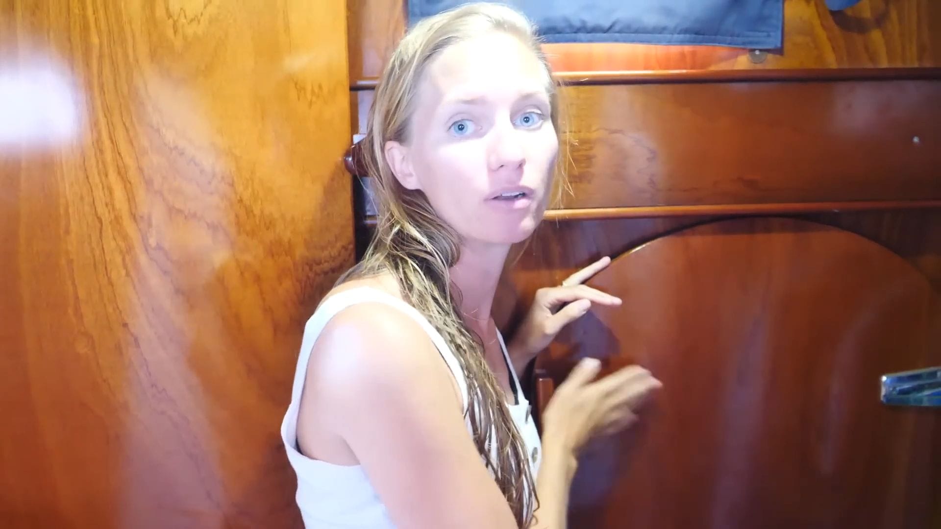 Storage throughout the boat is maximized brilliantly, with their entire wardrobe fitting efficiently into compact closets and additional seasonal items stored beneath the bed. A crucial safety feature here is the watertight bulkhead door – if the stern takes on water, they can seal this entire section and the boat will still float.