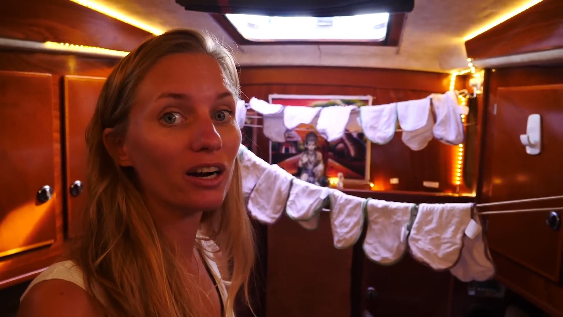 What’s absolutely remarkable is their front-loading refrigerator – a luxury most boat owners can only dream of, since typical marine fridges are top-loading and notoriously difficult to organize. Tucked right beside it sits their compact washing machine, running every other day to handle cloth diapers for baby Sierra, eliminating tons of waste.