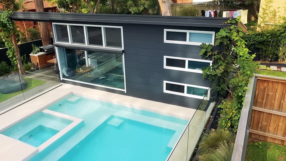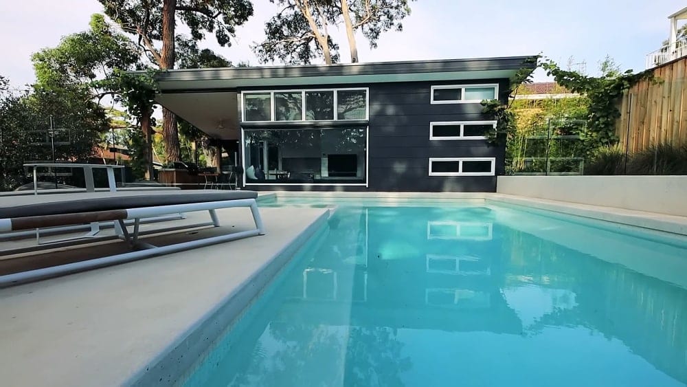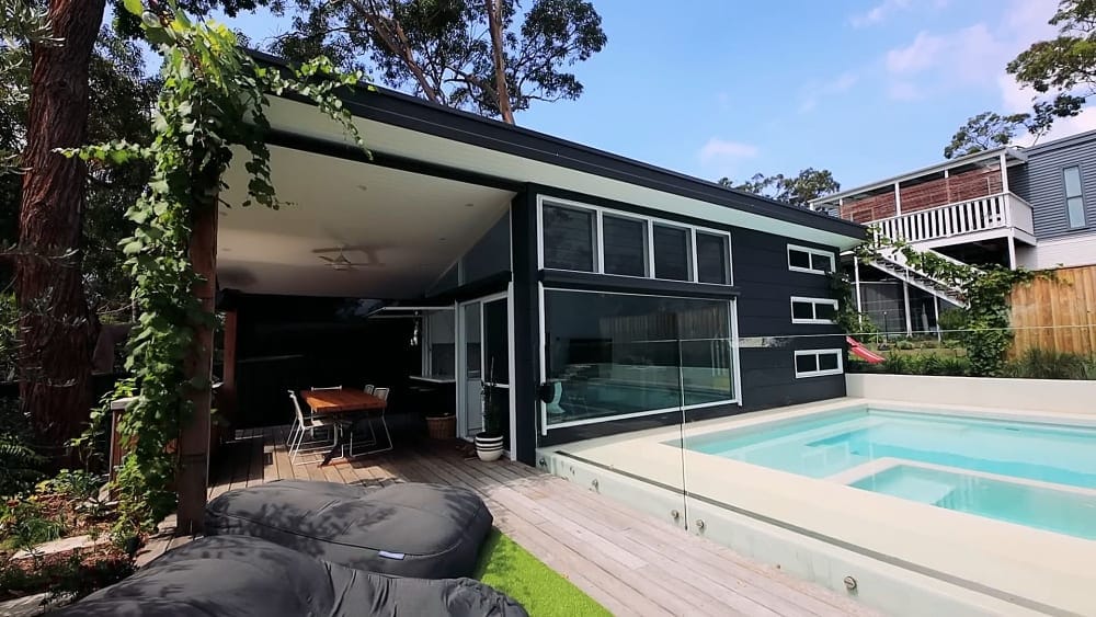 The story begins five years ago when Dan and Marnie purchased this block with a house at the front, initially planning nothing more adventurous than adding a swimming pool to their backyard. That simple pool dream quickly expanded into a pool and cabana, then guest accommodation for visiting parents, and finally blossomed into their own custom-built family home.