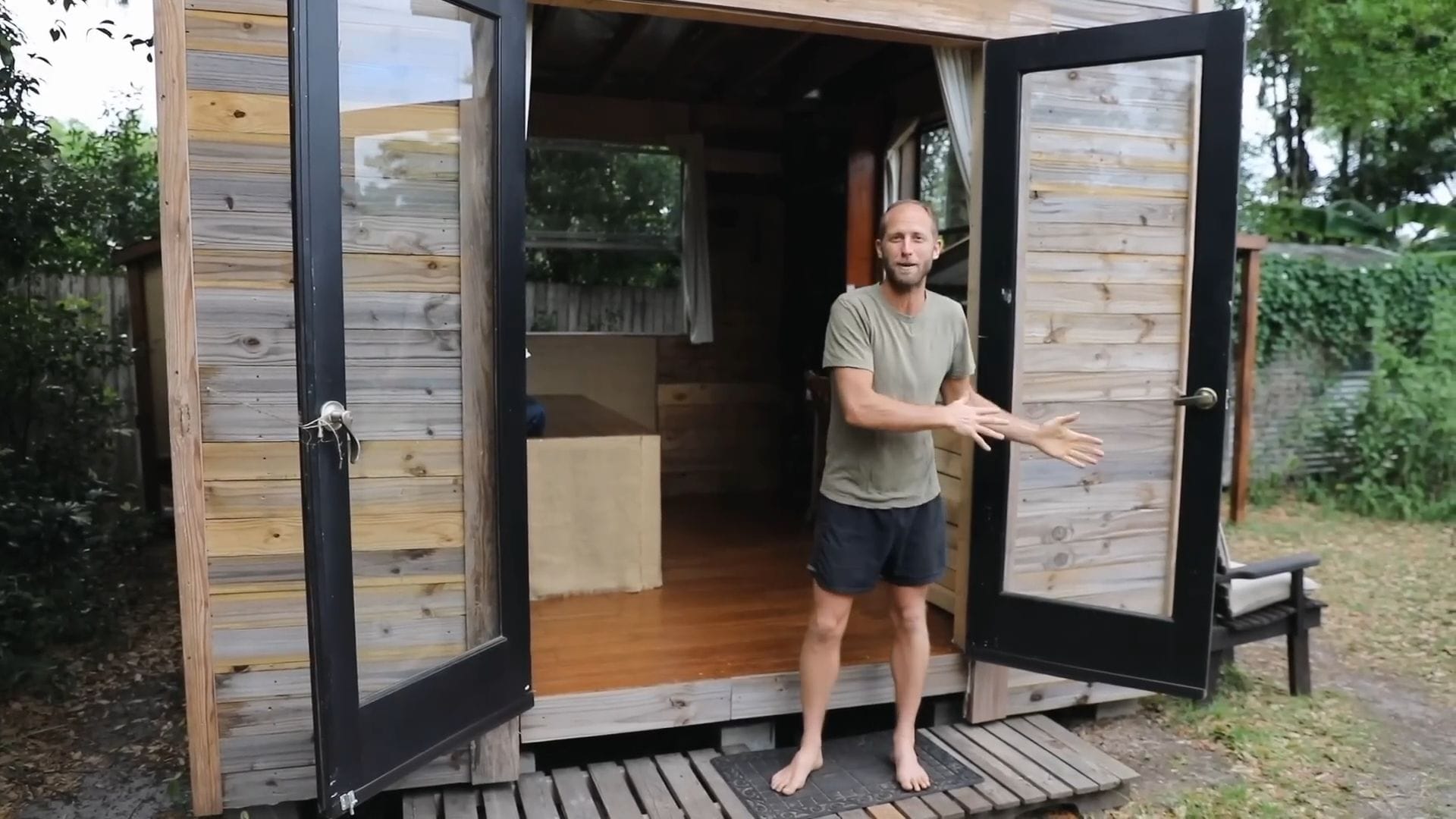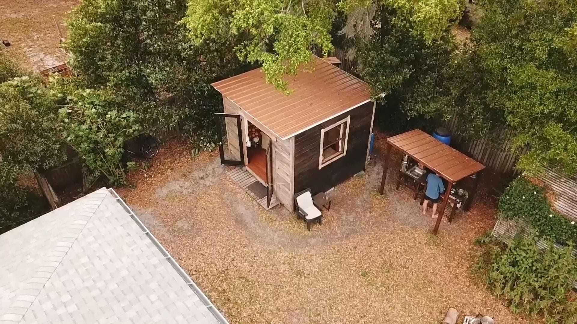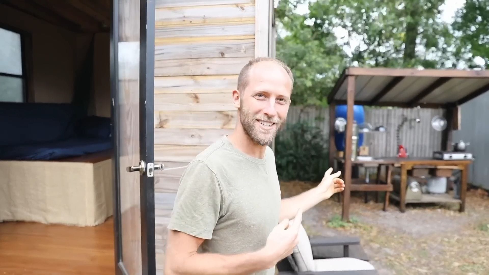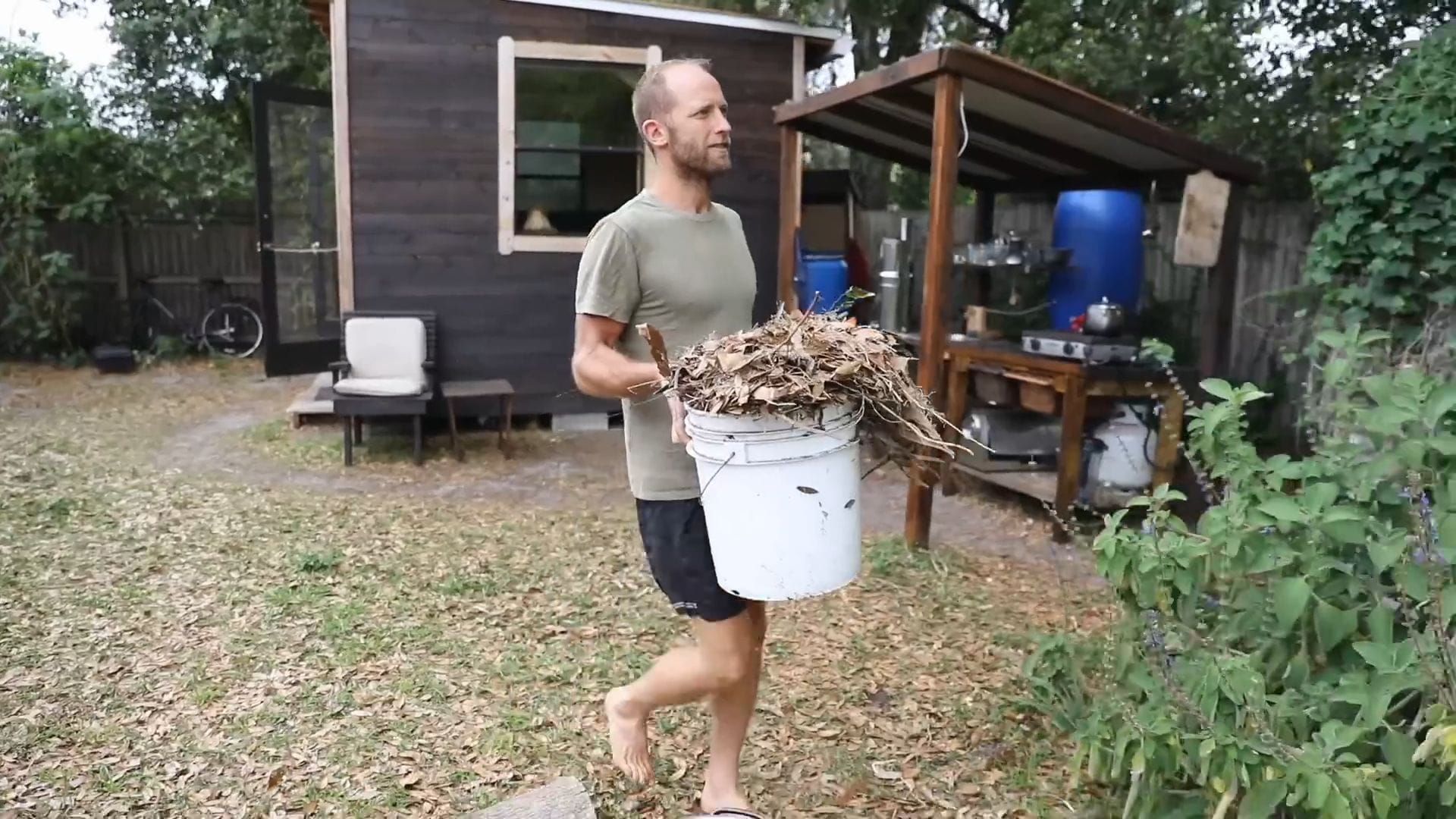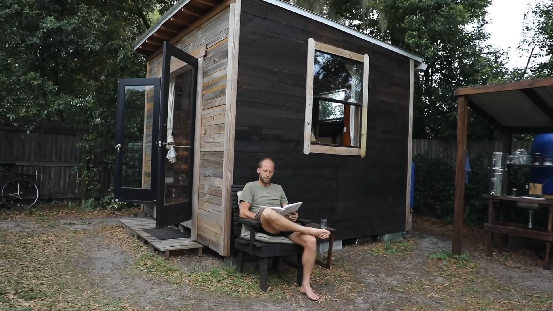 Rob spends most of his time outside the tiny house, whether in the community, the yard, or his outdoor kitchen where the real magic happens.
