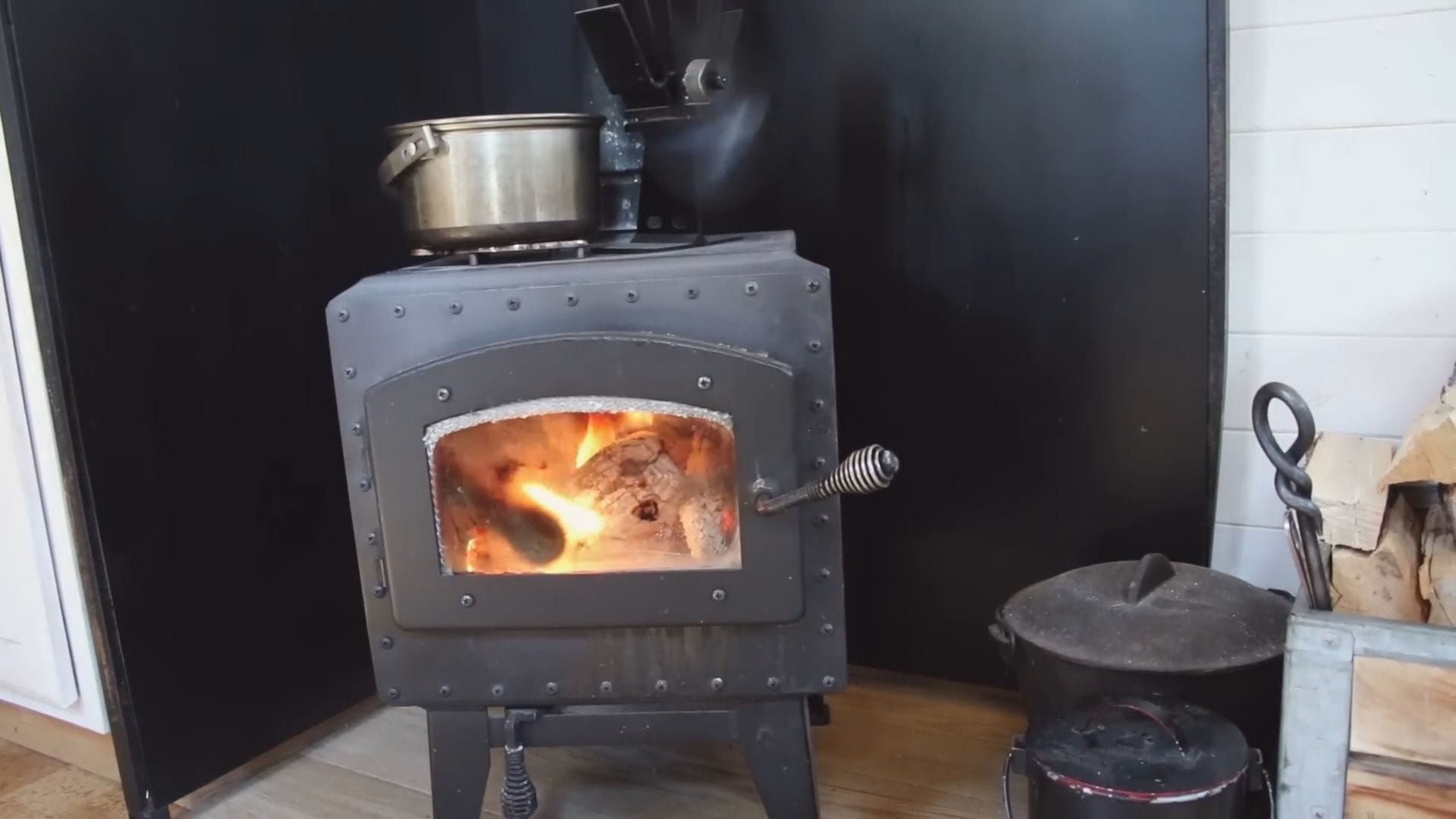 The original propane heater under the stairs required electricity to run its fan, but the addition of the wood stove has been transformative.