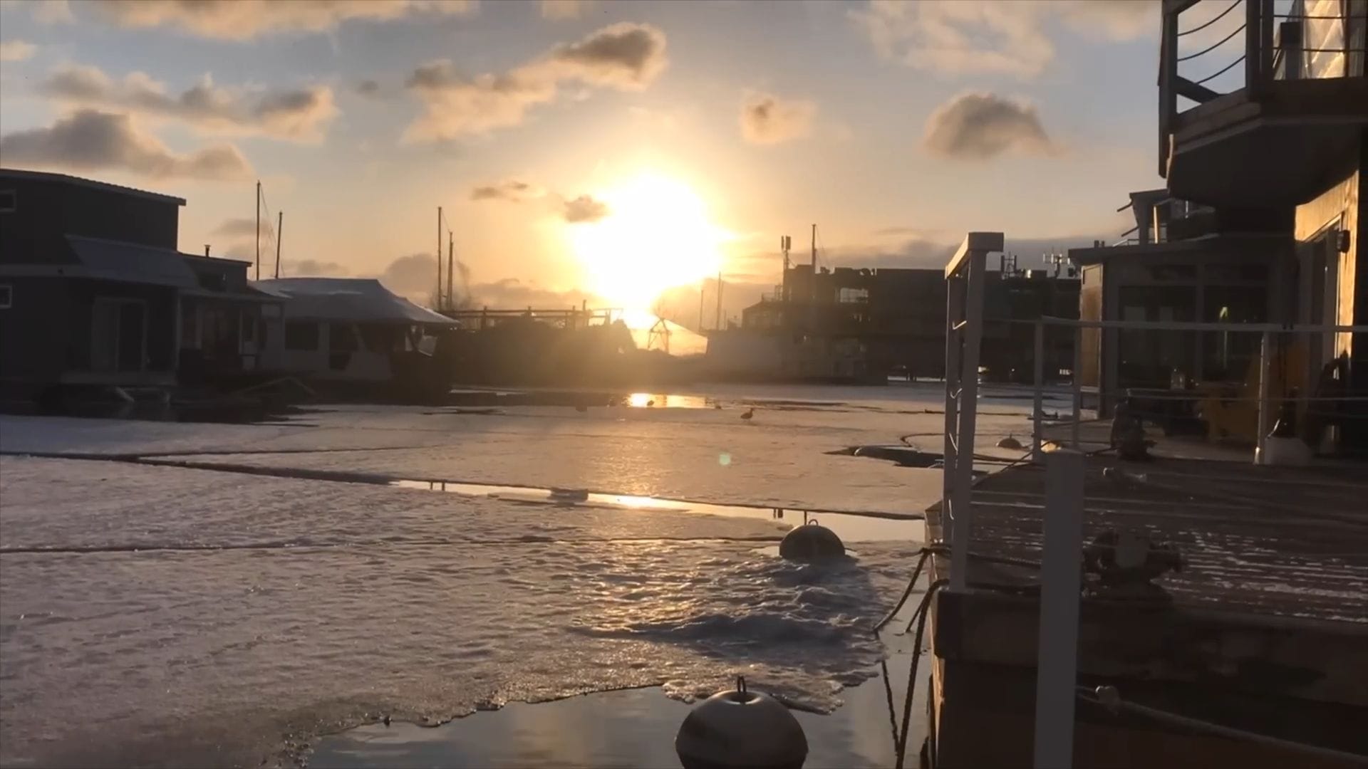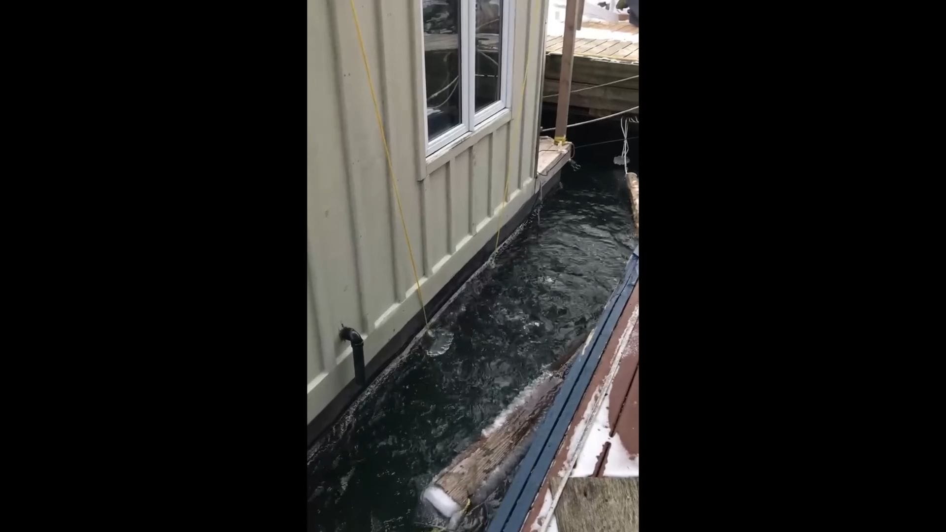 The current indoor staircase and crank window system provides much more practical access to both the bedroom and the stunning upper deck. Living on water year-round in Canada presents unique challenges that Kate has masterfully learned to navigate over three winters. Her first winter included two pipe-freezing incidents that brought ten helpful community members to her rescue, emphasizing the supportive nature of this floating neighborhood.