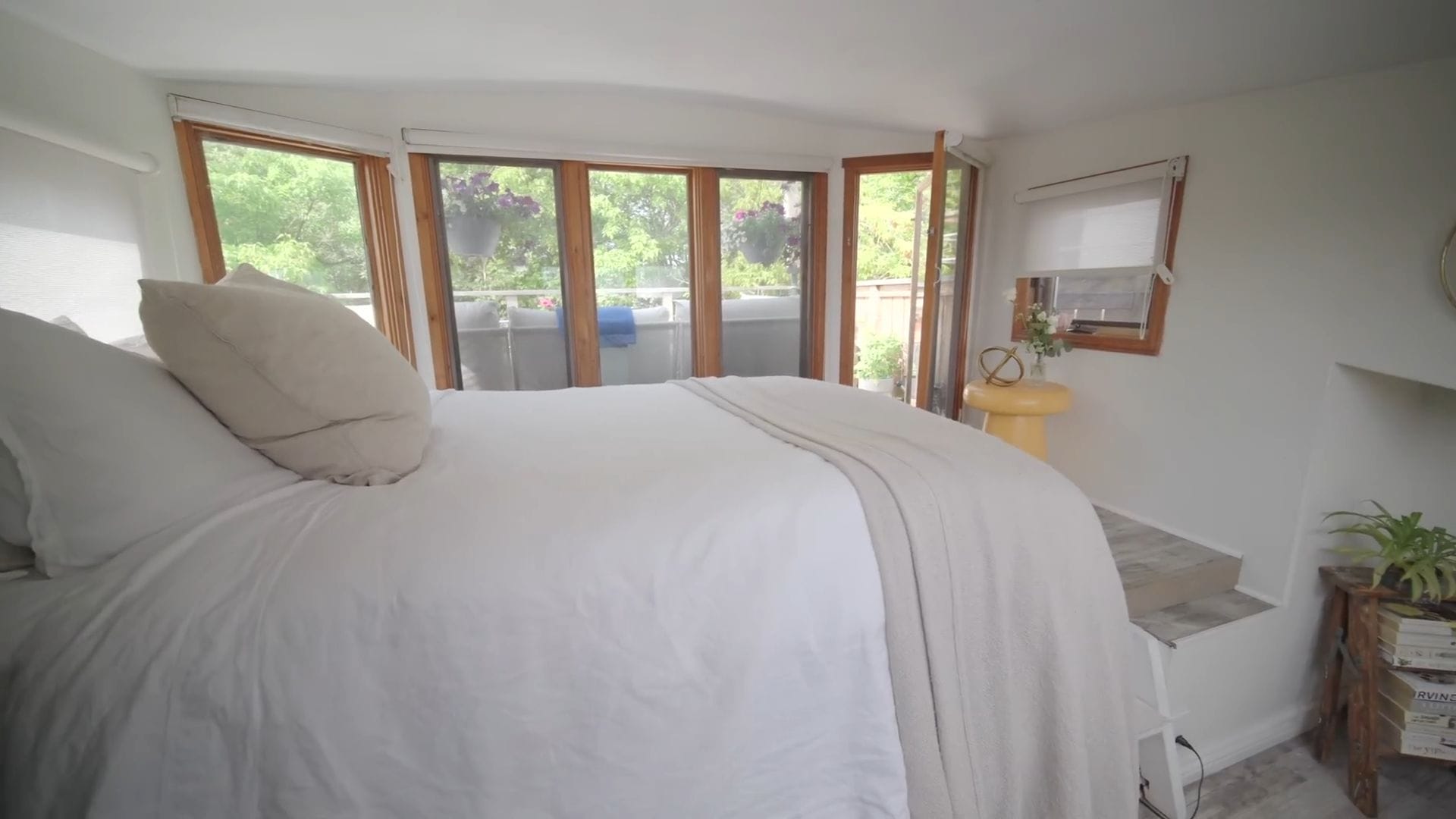 The ease of stepping directly from home into a kayak for morning exercise or sunset relaxation perfectly embodies the waterfront lifestyle this home provides. Climbing the stairs to the loft bedroom reveals a surprisingly spacious and incredibly bright sleeping area that required custom curtains to manage the early summer sunrise at 5:30 AM. The queen-size bed sits on a small pedestal, and while it took some practice to master graceful entry and exit, the sleeping space is solidly functional and comfortable.