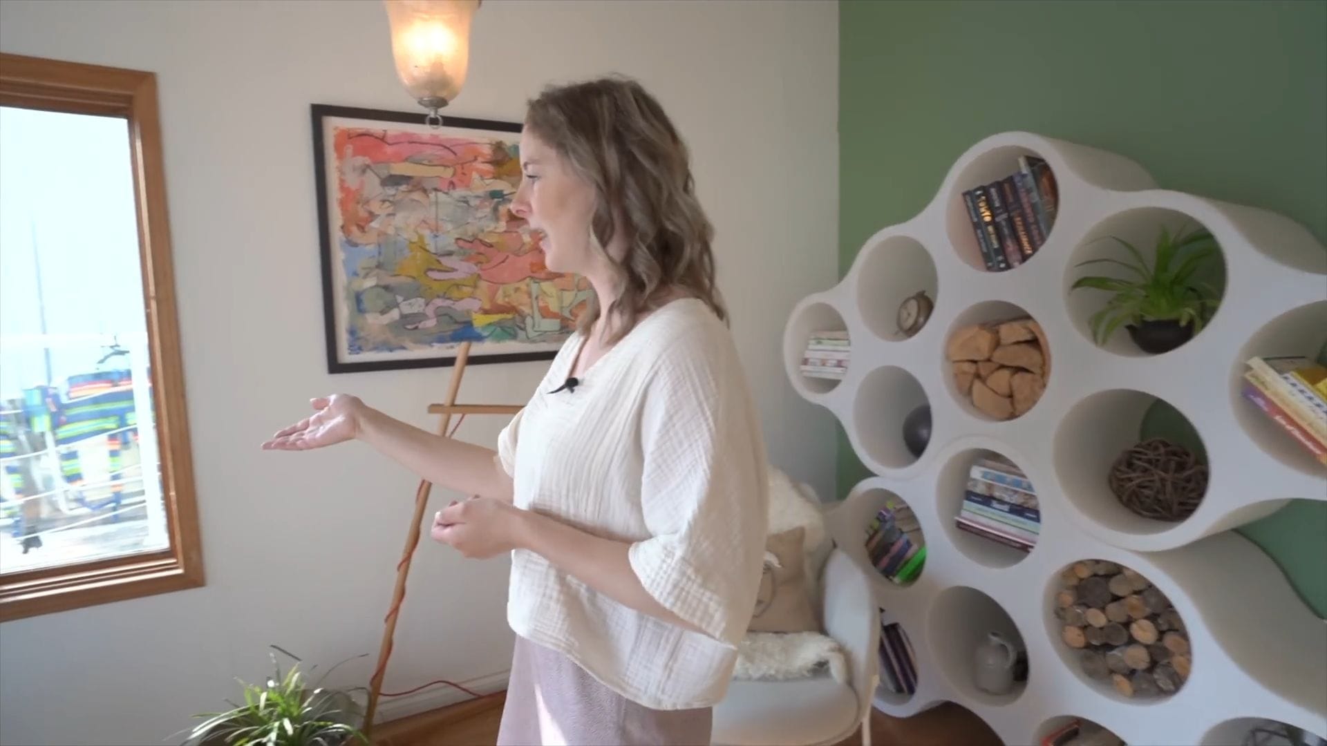 Power, high-speed internet, and all utilities connect directly from the dock, making this floating lifestyle surprisingly convenient and connected. The dock community includes 25 float homes alongside Kate’s houseboat, with the unique advantage of being positioned right on fixed land. This prime location allowed for the construction of a practical back deck, which Kate built with her father and brother immediately after moving in.