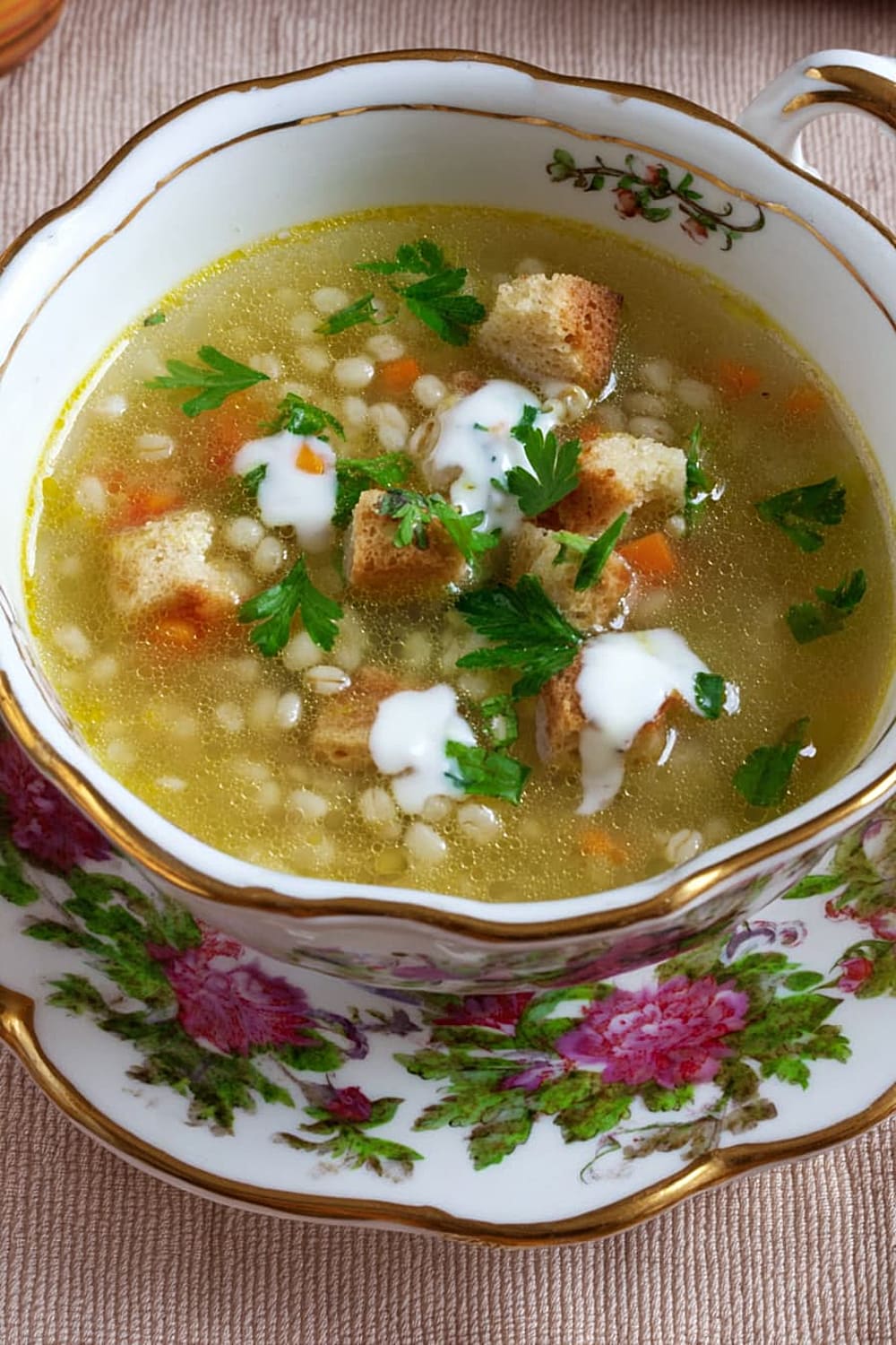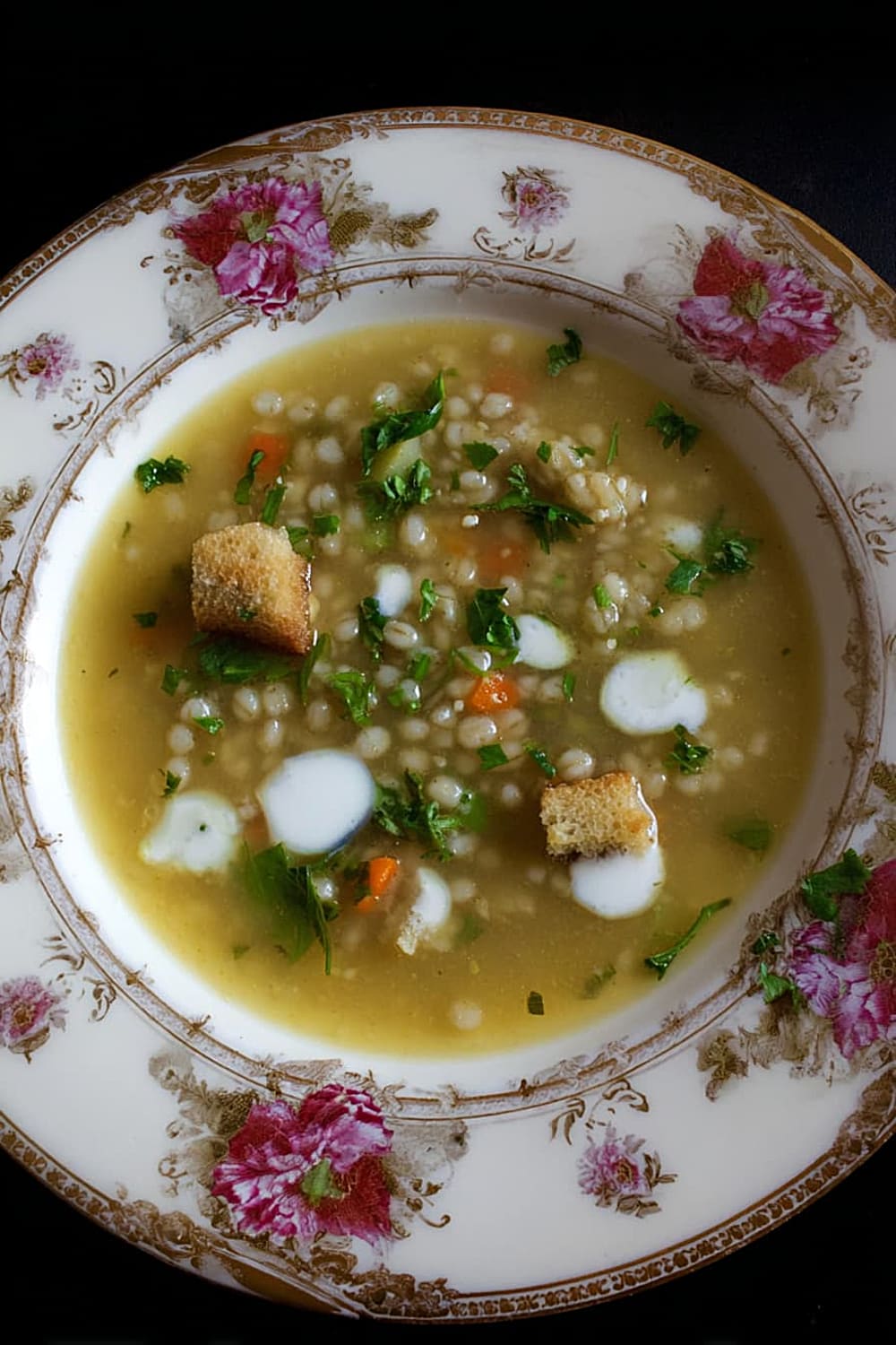 This isn’t your ordinary peasant soup – it’s an elegant, refined dish that transforms humble pearl barley into pure sophistication.