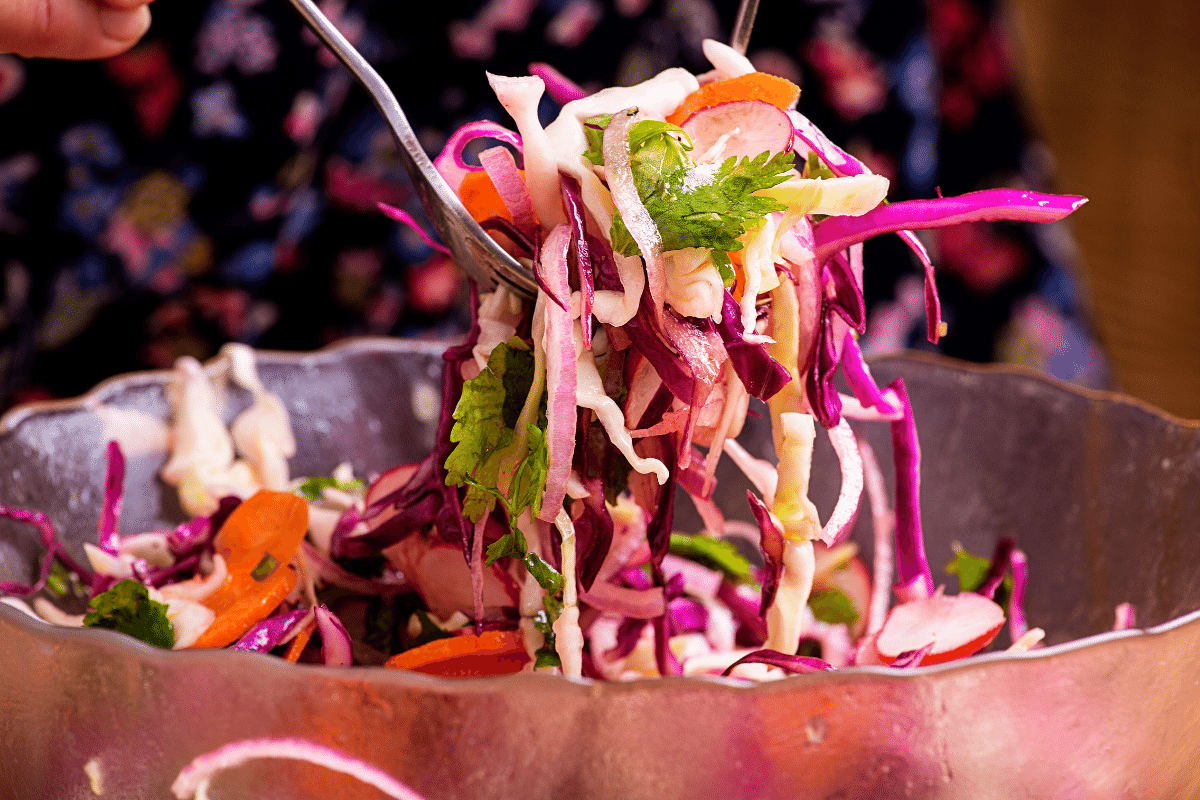 There are so many different types of slaws out there but we recommend getting some tangy Mexican slaw.