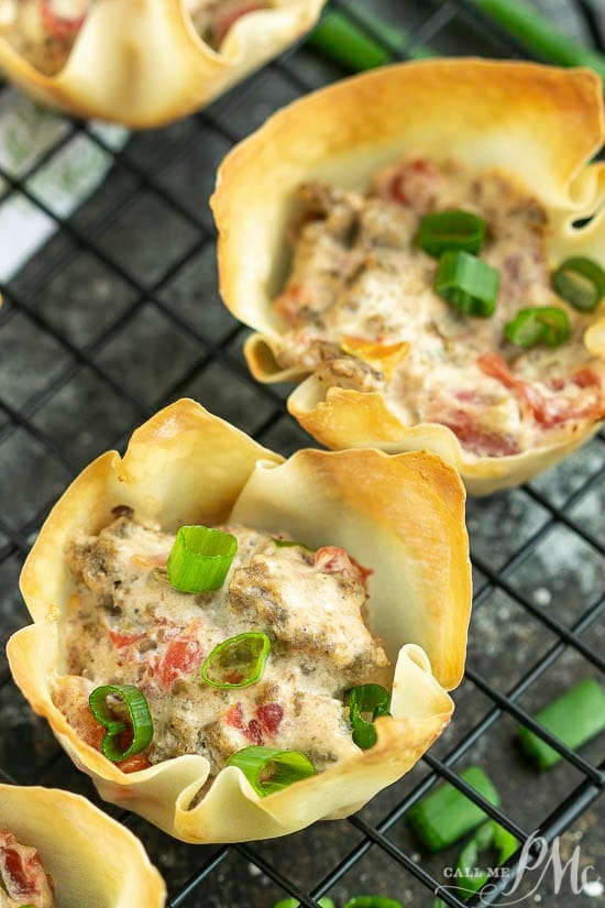 43. Cream Cheese Sausage Rotel Wonton Cups