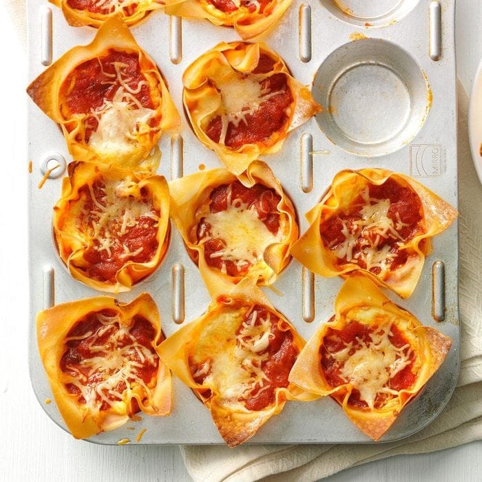 Pro Tip: If you’re short on time, you can use pre-made pizza dough instead of wonton wrappers. Just roll it out into small circles, place in a mini muffin tin and bake according to the recipe instructions.